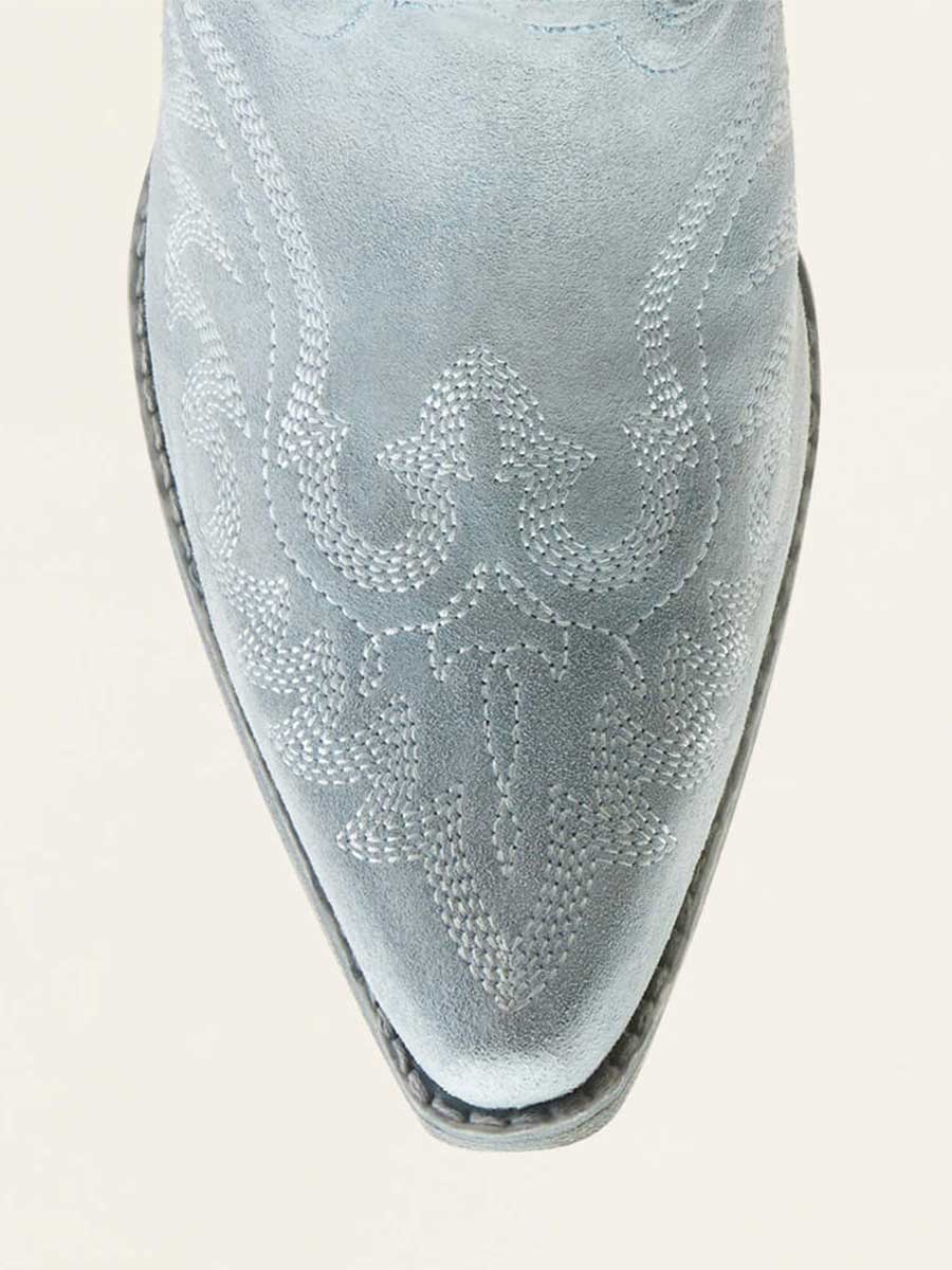Baby Blue Faux Suede Snip Toe Embroidered Block Heel Cowgirl Ankle Boots