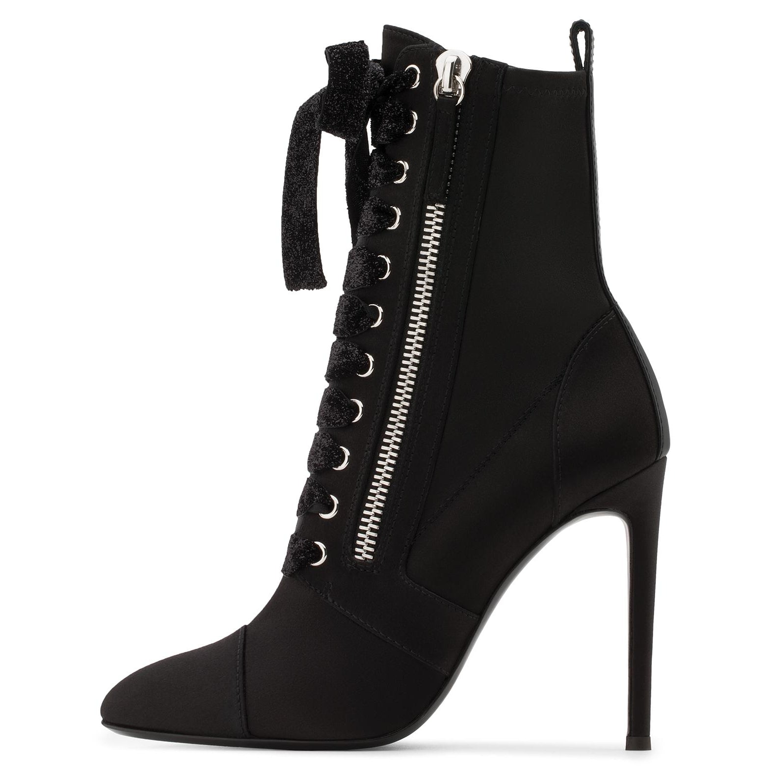 Black Pointy Toe Stiletto Heels Lace Up Ankle Boots