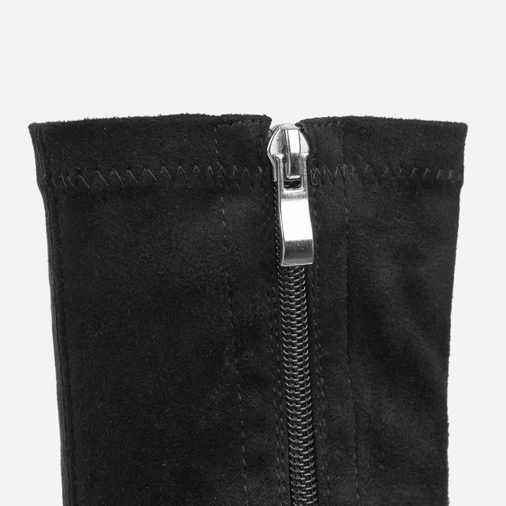 Black Faux Suede Pointed Toe Stiletto Heel Side-Zip Ankle Boots