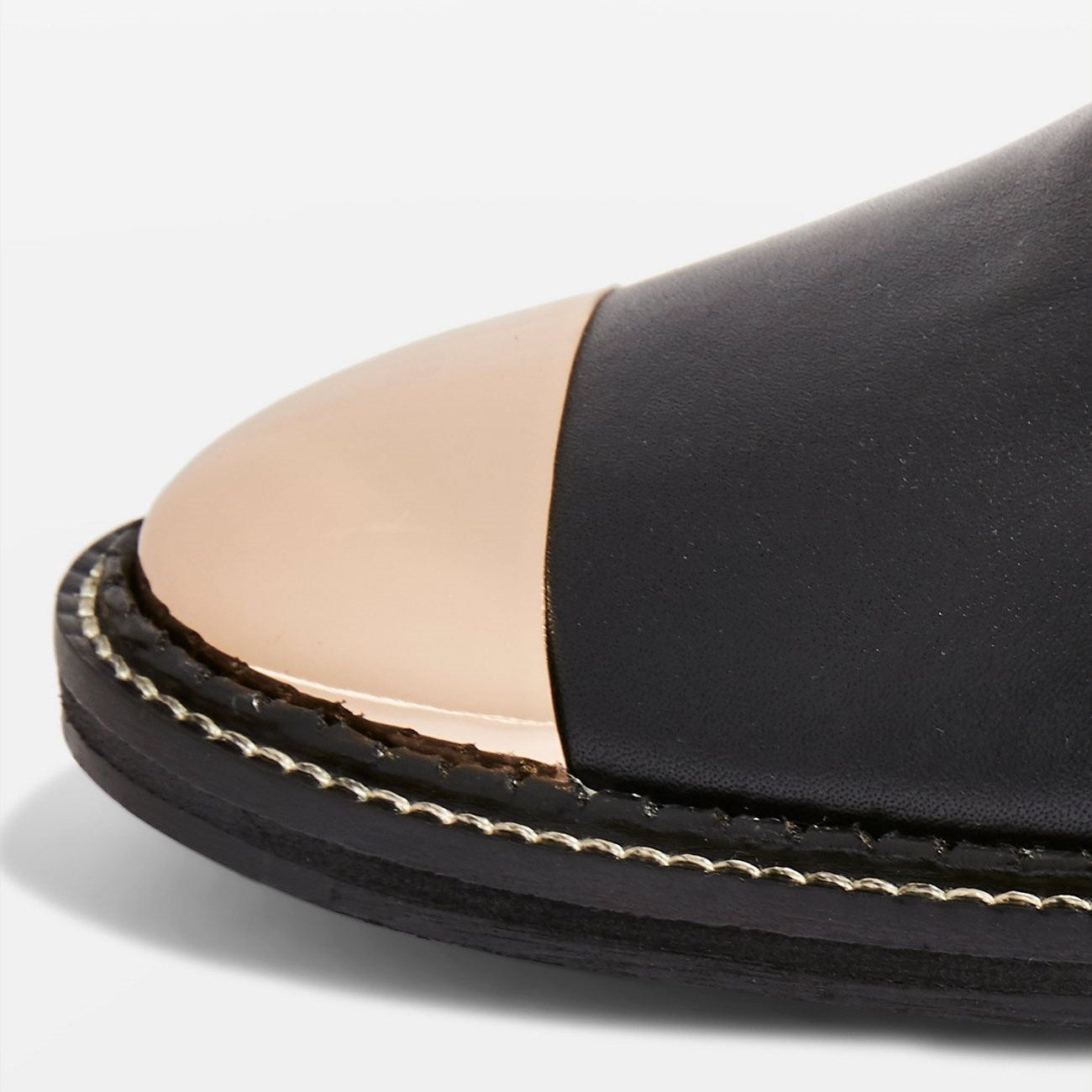 Black Metal Cap Toe Lace-Up Flat Ankle Boots with Zipper