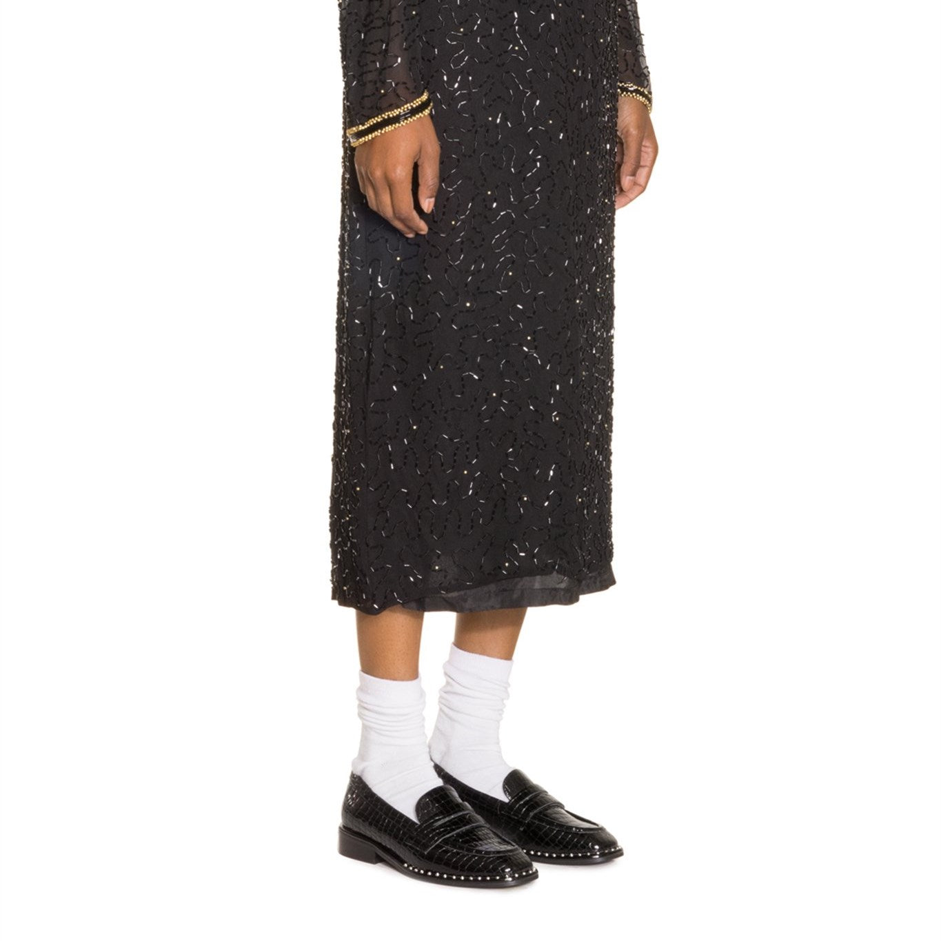 Black Patent Leather Embossed Square Toe Penny Loafers for Women