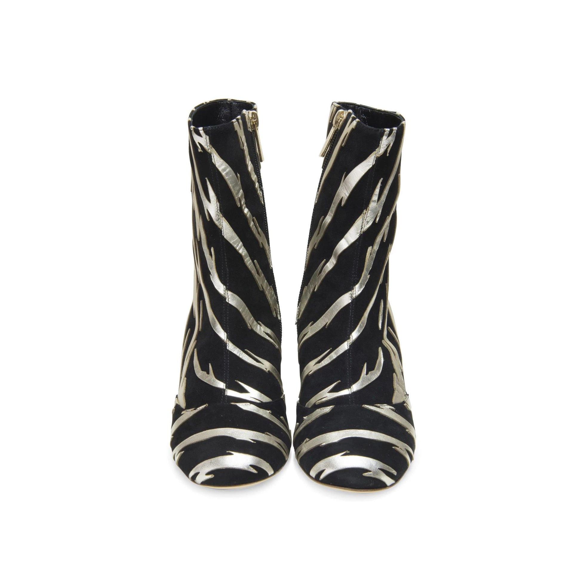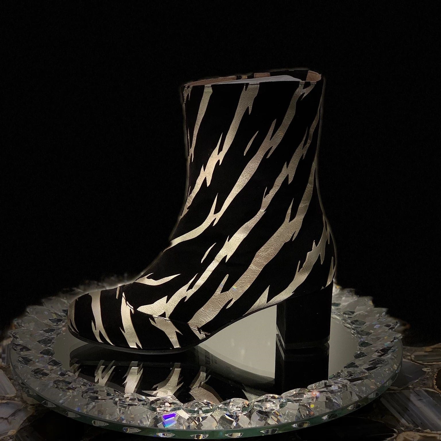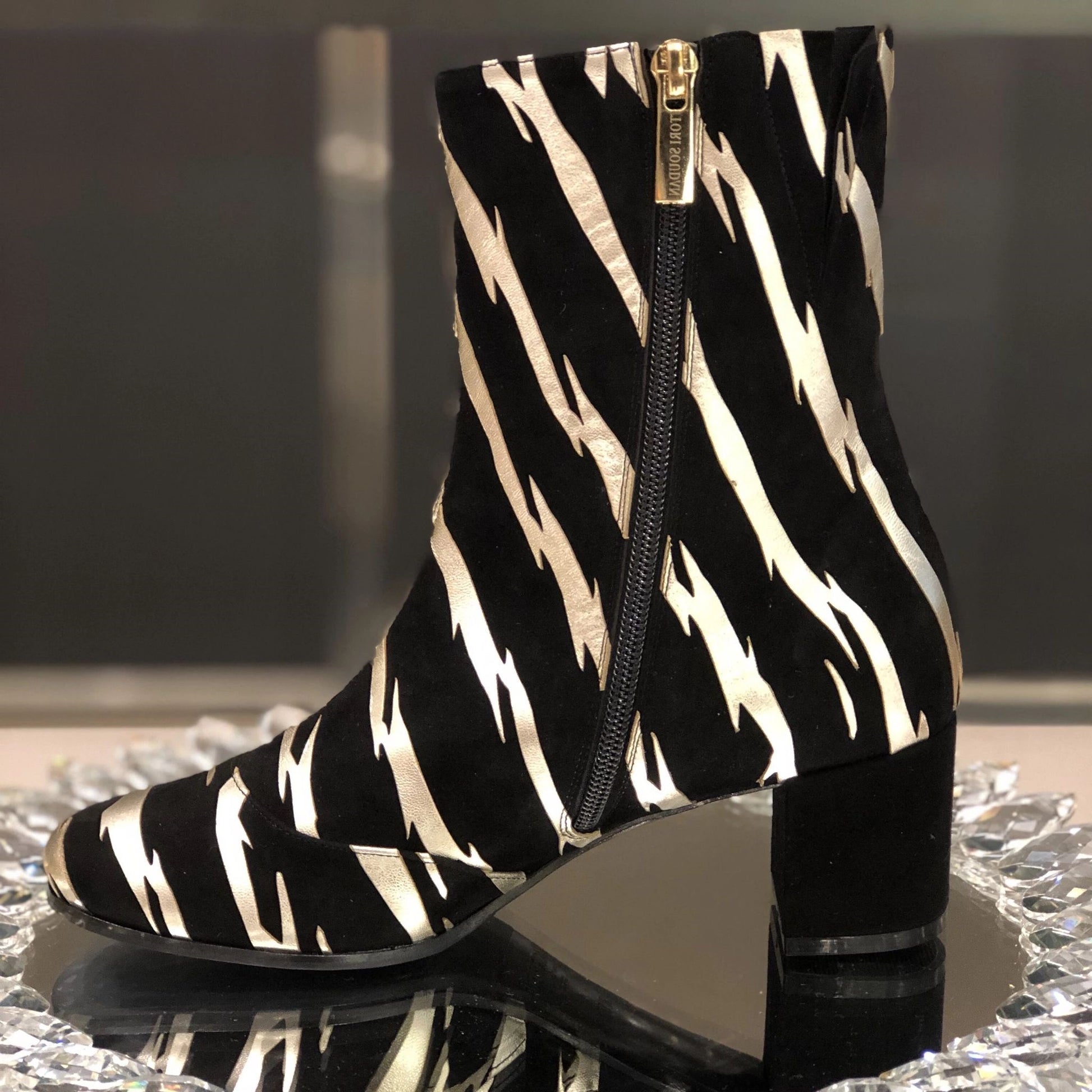 Black & Champagne Block Heel Round Toe Ankle Boots