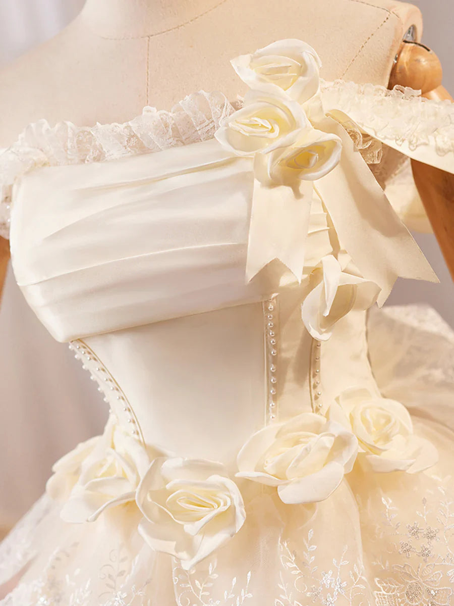 Champagne Lace Layer Knee Length Prom Dress, Off the Shoulder Evening Party Dress TP777