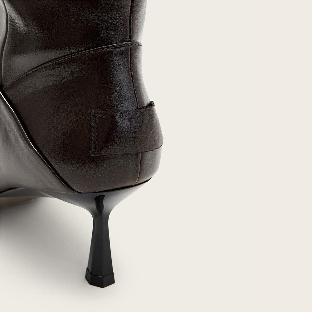 Dark Brown Pointed Toe Flared Heel Foldable Knee High Boots