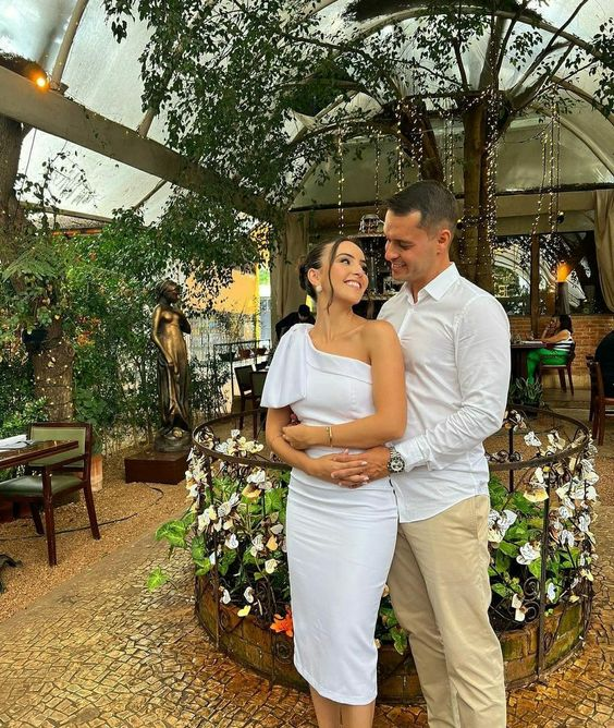 Elegant White One Shoulder Short Wedding Dress,Midi Prom Dresses