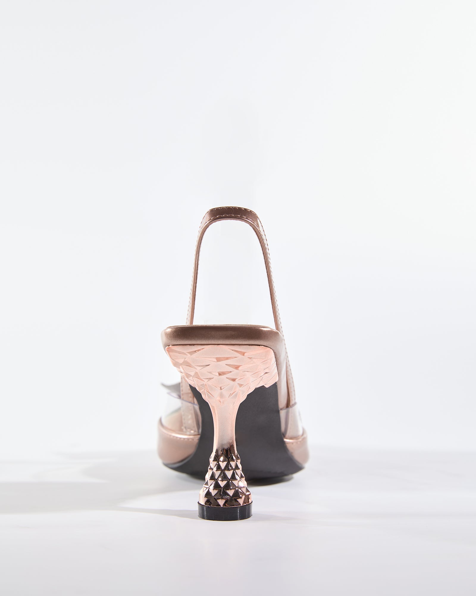 Elena Rhinestone Bow Flared Heels In Rose Gold
