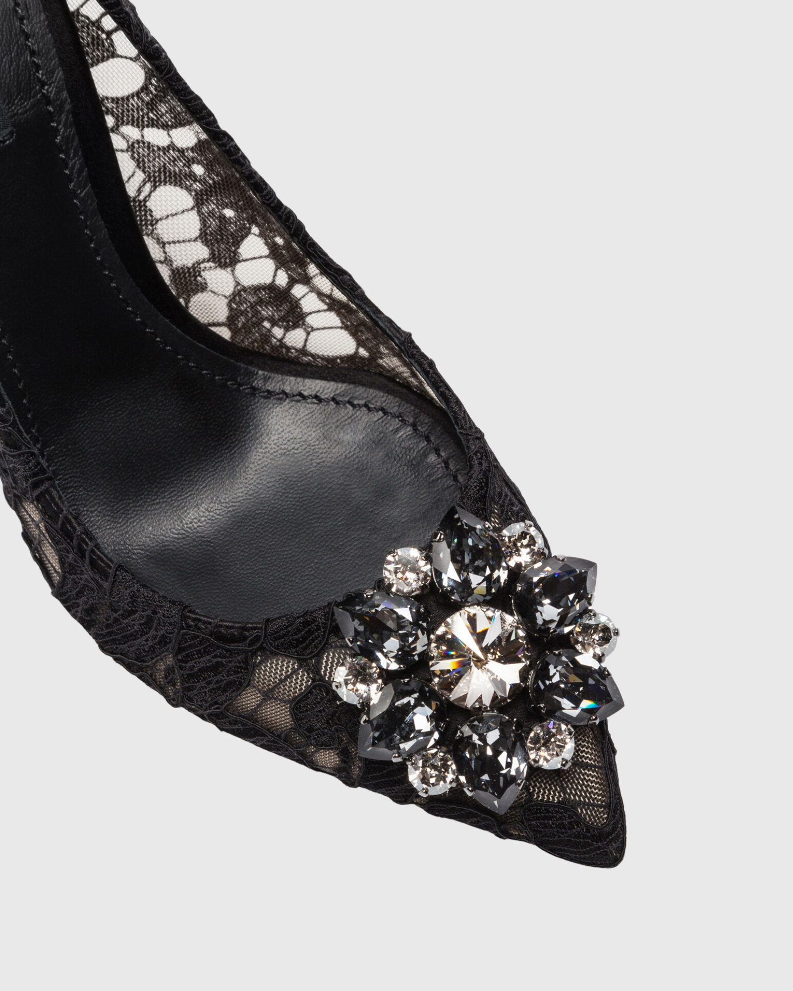 Step into elegance with the Ezra Rhinestone Lace Pumps in Black. These stunning heels combine delicate lace detailing with sparkling rhinestones, adding a touch of glamour to any outfit. Perfect for special occasions or elevating your everyday style, they offer both sophistication and eye-catching charm. Make a bold statement with every step in these beautifully crafted pumps.