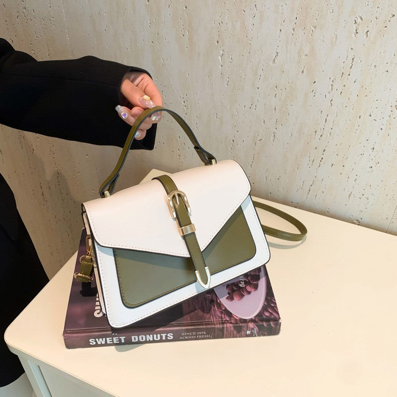Sac à bandoulière carré à rabat avec coutures contrastées