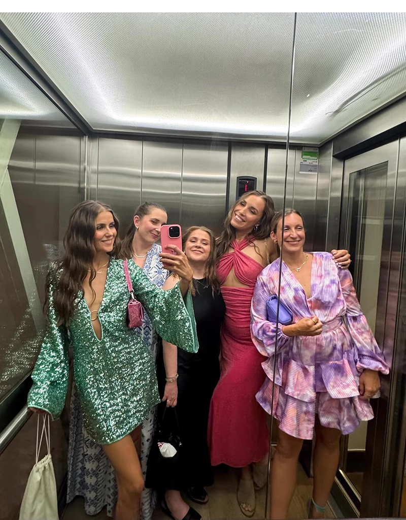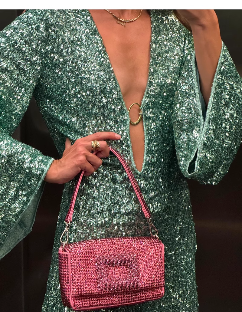 Fashion Green V-neck Sequin Design A-line Long-sleeved Women Party Dress Homecoming Dress TP3892