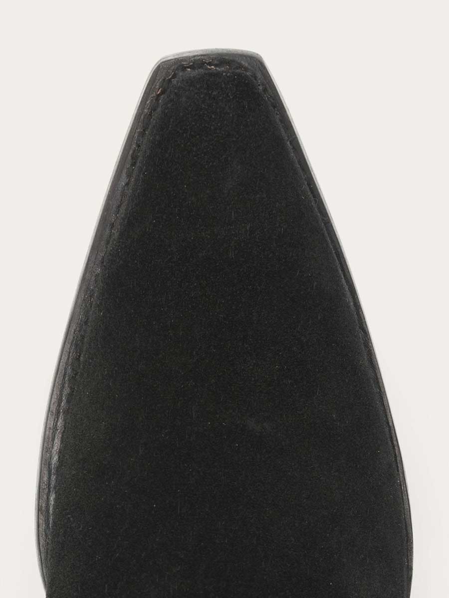Black Faux Suede Snip Toe Angle Fringe Side-Zipper Cowgirl Ankle Boots With Chunky Heels