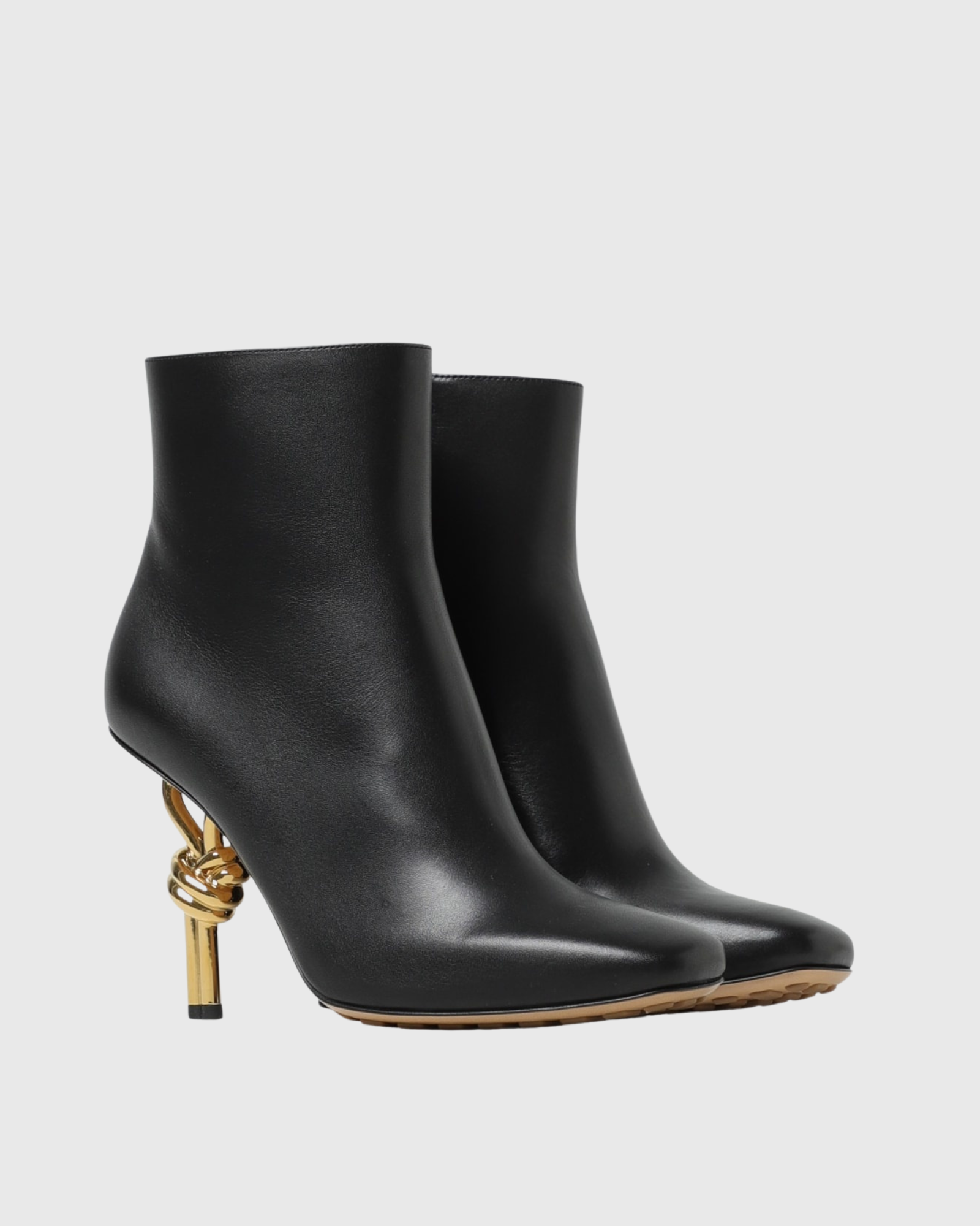 Step into bold sophistication with the Fiamma Leather Metal Knot Ankle Boots in Black. Crafted from premium leather, these boots feature a striking metal knot detail that elevates any outfit. Designed to offer both style and durability, they provide a confident, edgy finish to your wardrobe. Perfect for making a lasting impression, these ankle boots combine fashion-forward design with everyday wearability.