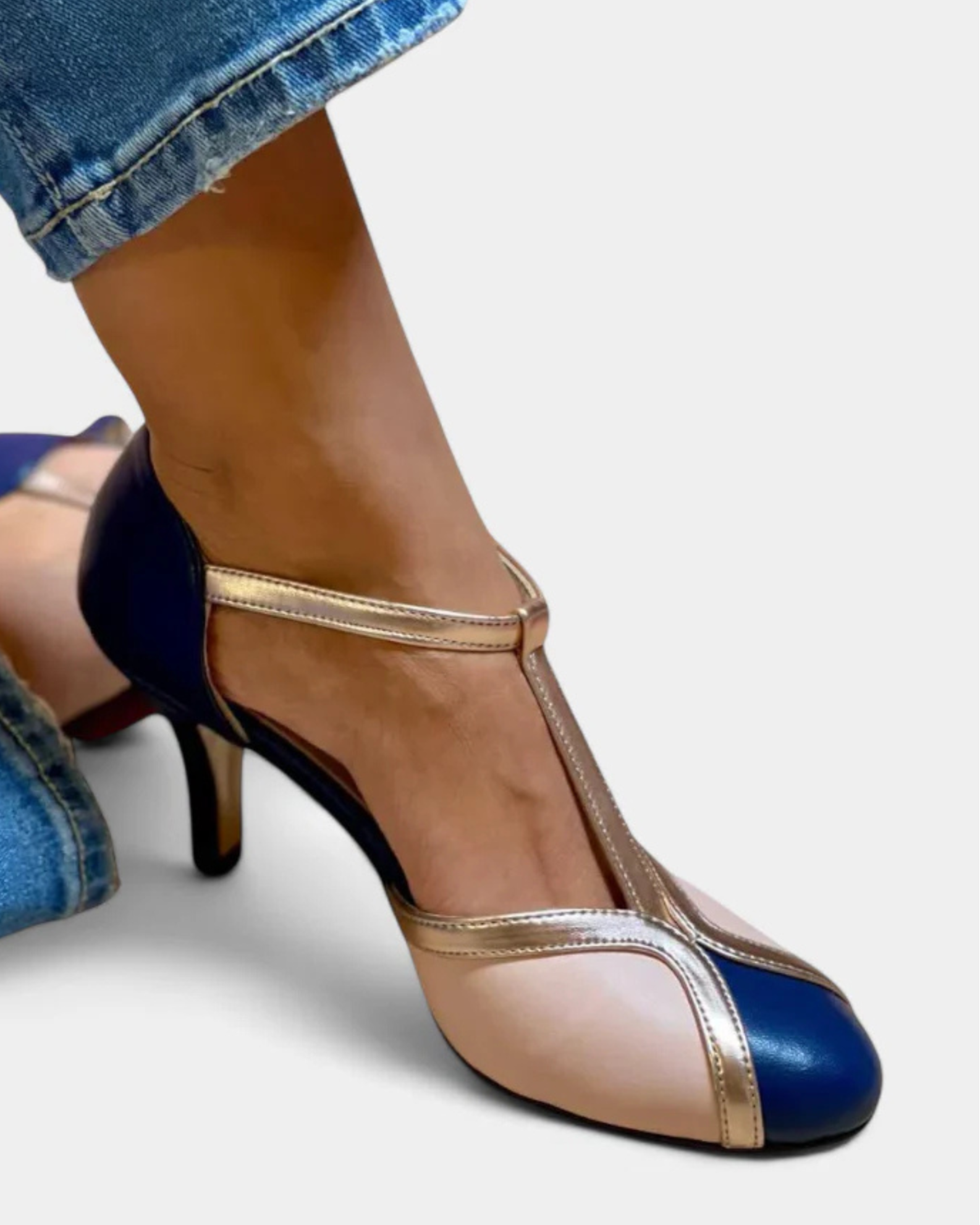 Step into effortless elegance with the Giannina T Strap Splicing Pumps. Designed to blend style and comfort, these pumps feature a distinctive T-strap that securely hugs your foot, while the splicing detail adds a modern edge. Perfect for elevating both professional and casual looks, they provide a flattering silhouette and reliable support for all-day wear. Make every step confident and stylish with these versatile pumps that seamlessly transition from day to night.