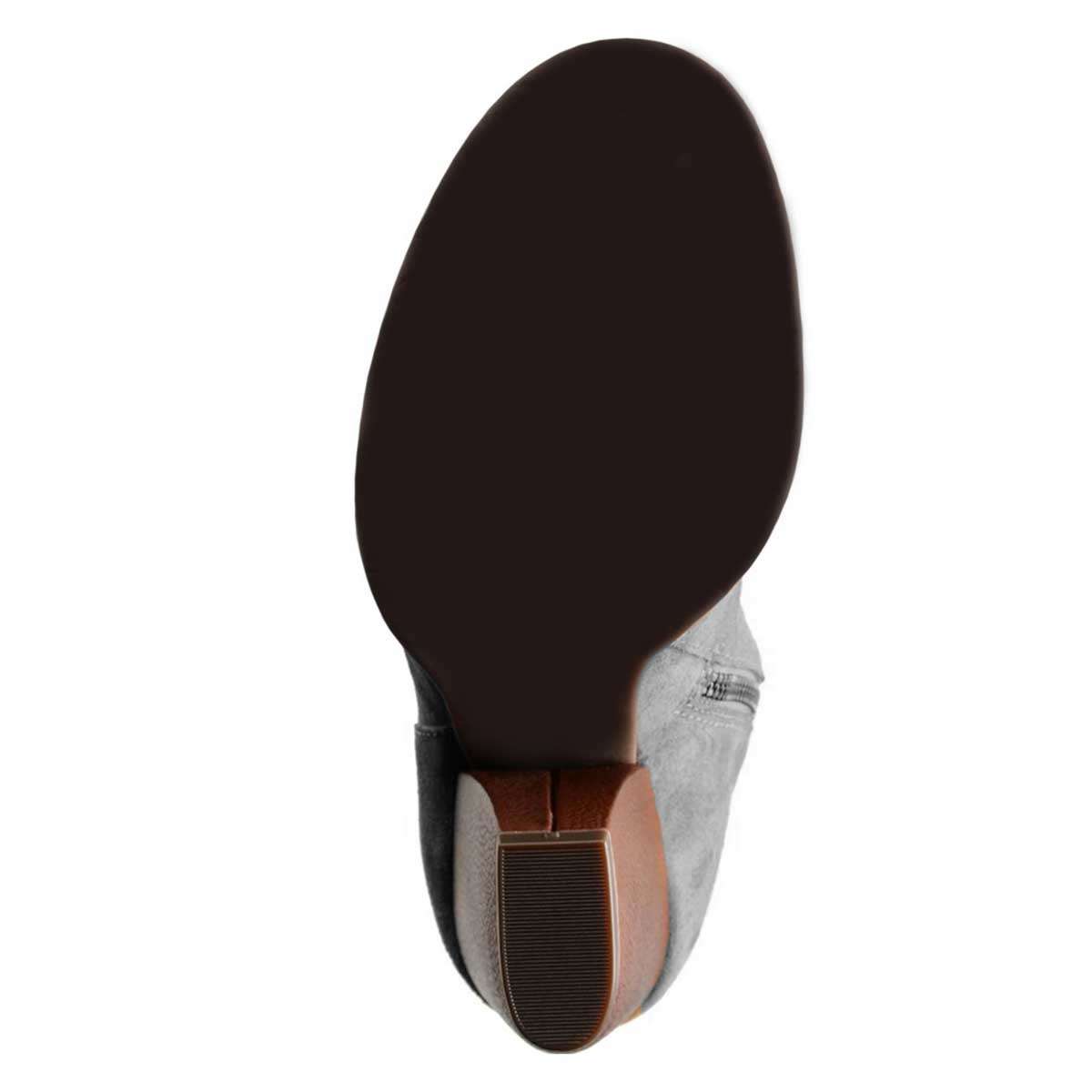 Grey Closed Toe Tasseled Tie Front Chunky Heel Women's Mid Calf Boots