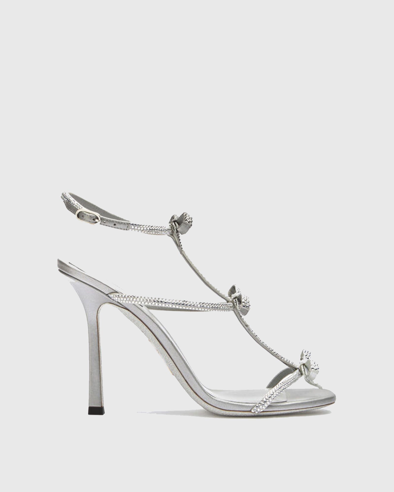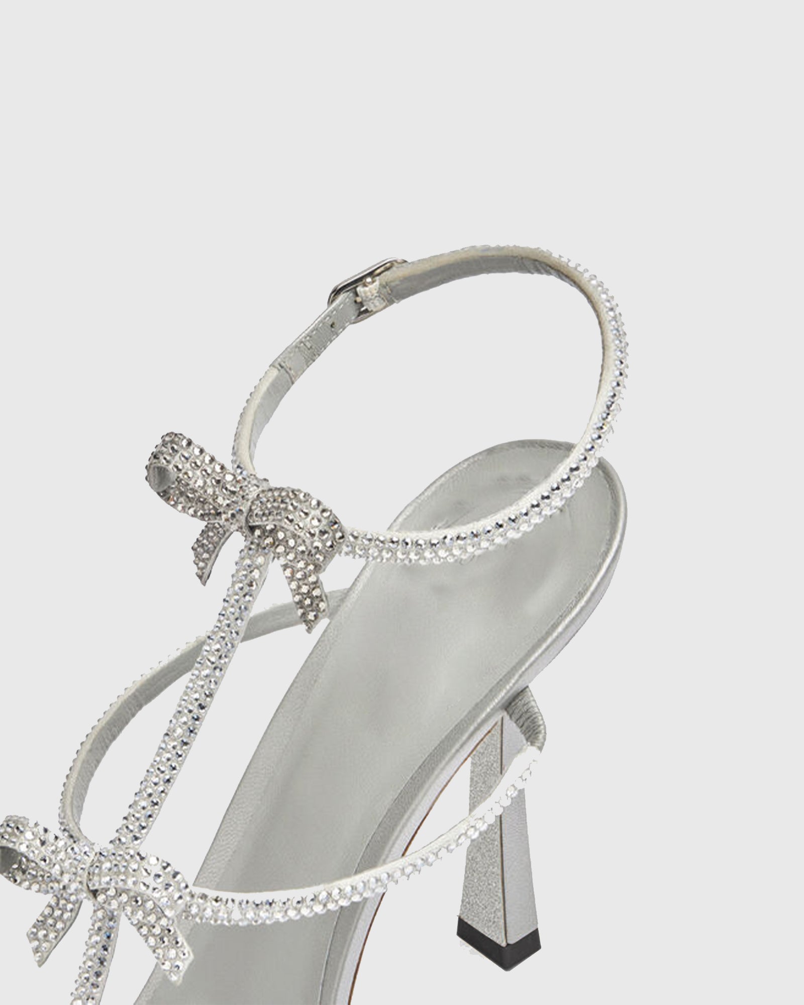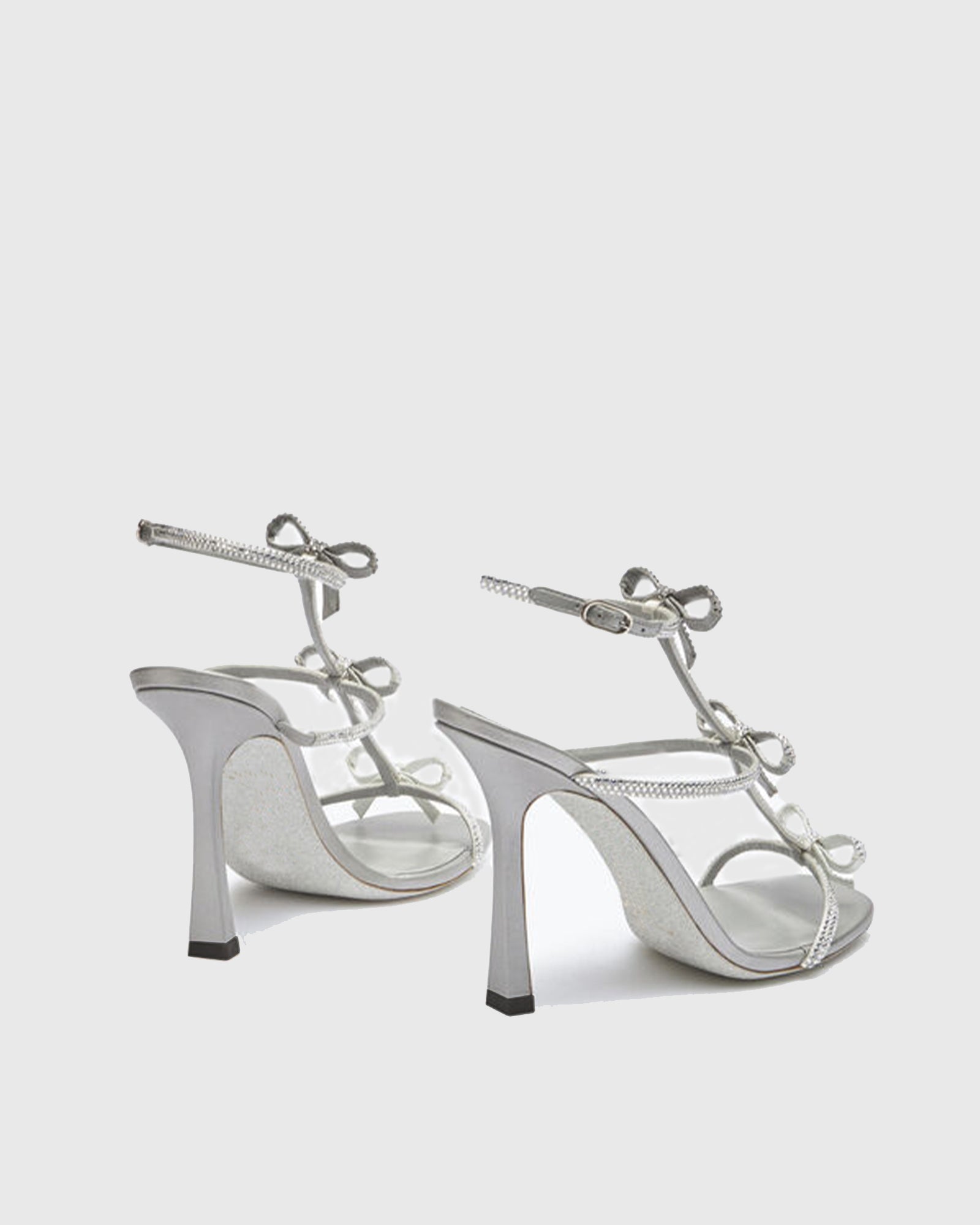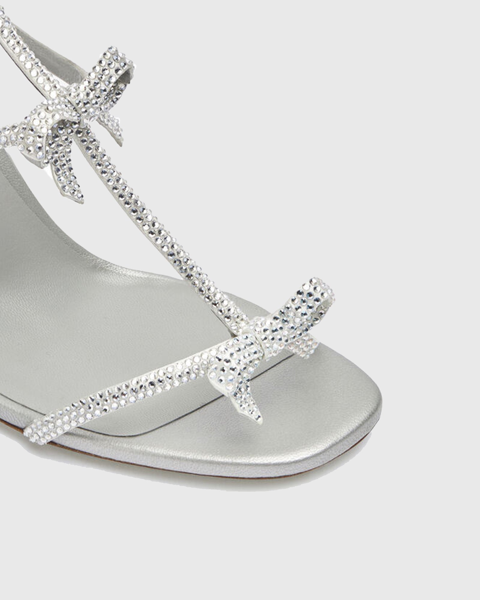 Ilaria Rhinestone Bow Strap Sandals In Silver