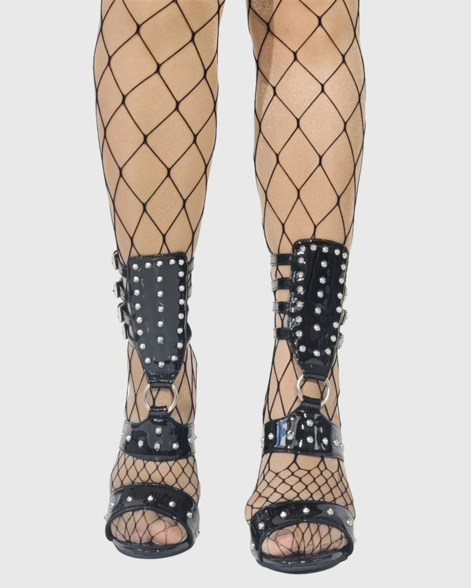 Step into effortless style with the Macy Rivet Metal Ring Strap Sandals. Featuring sturdy rivet accents and sleek metal ring details, these sandals offer both durability and a chic edge. Their adjustable straps ensure a perfect fit, while the comfortable sole supports all-day wear. Elevate your summer look with a pair that blends bold design and dependable comfort seamlessly.
