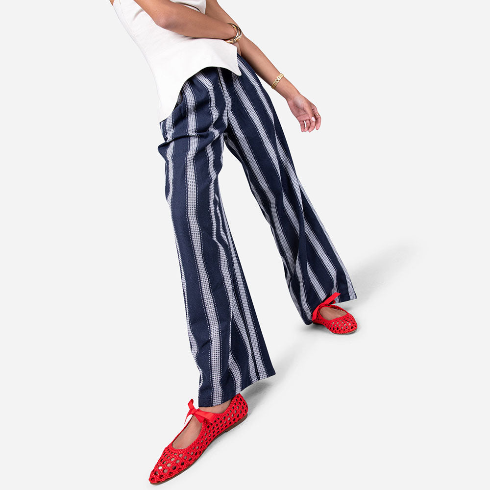 Red Vegan Leather Closed-Toe Woven Tie-Up Flat Shoes for Women