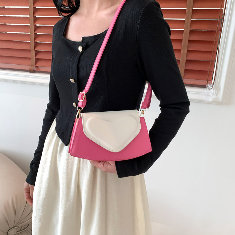 Sac à bandoulière irrégulier en forme de cœur à contraste de couleurs simple