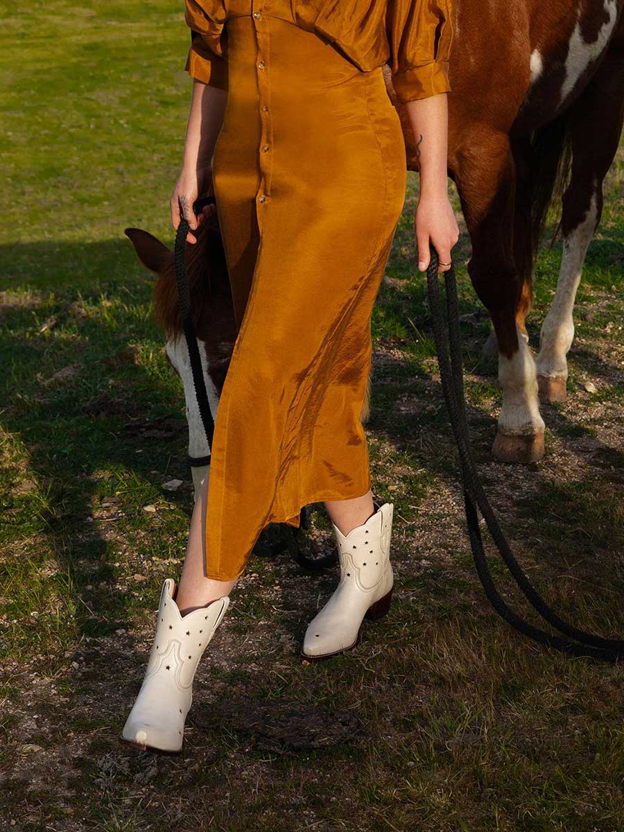 White Snip Toe Stars Detail Chunky Heel Cowgirl Ankle Boots