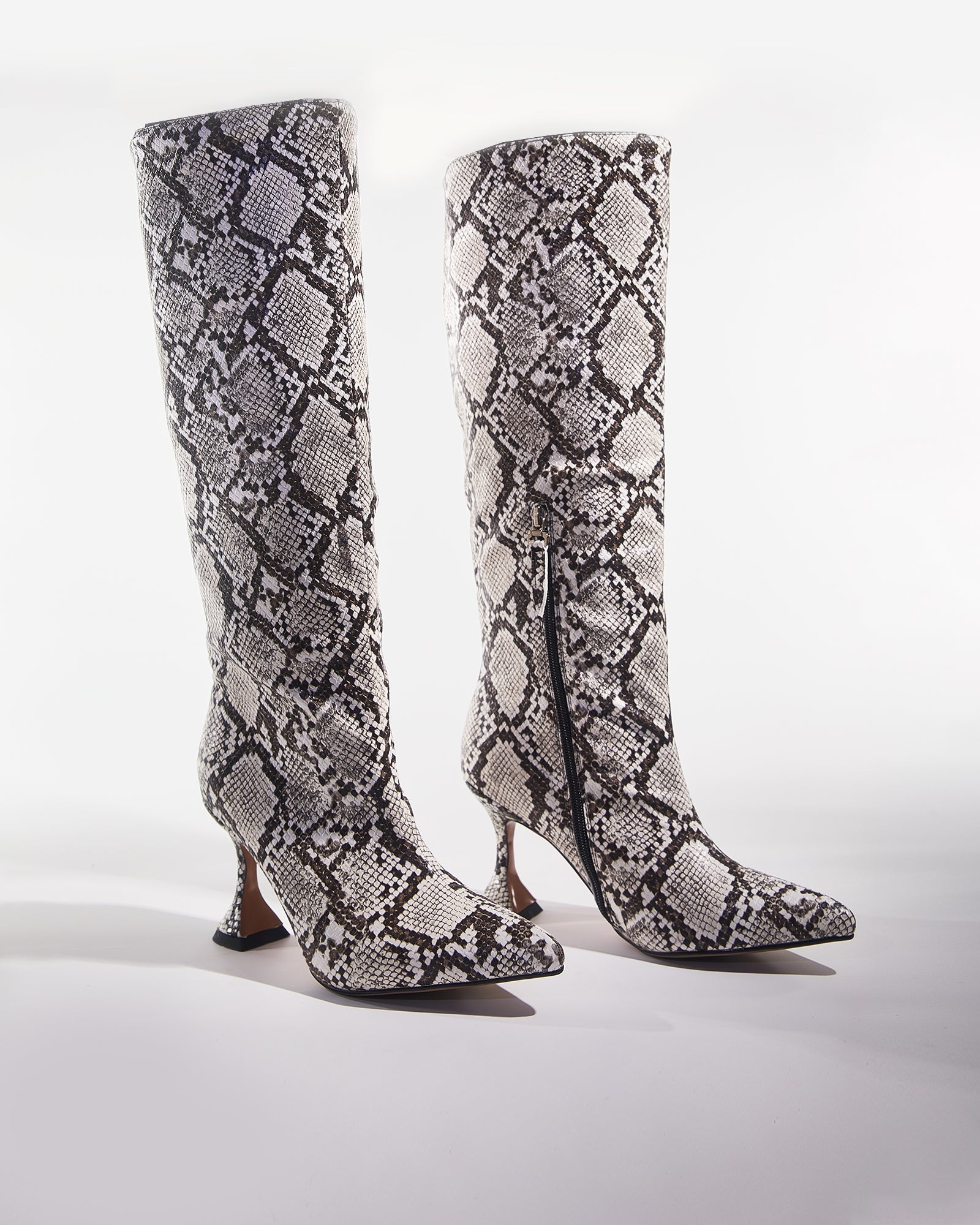 Step into sophistication with our Story Snake Print Flared Heels in Grey. These statement shoes combine exotic snake print texture with a modern flared heel design for head-turning style. The versatile grey palette complements any outfit while the comfortable construction ensures you'll look stunning from day to night. Perfect for the fashion-forward woman who demands both elegance and edge in her footwear collection.