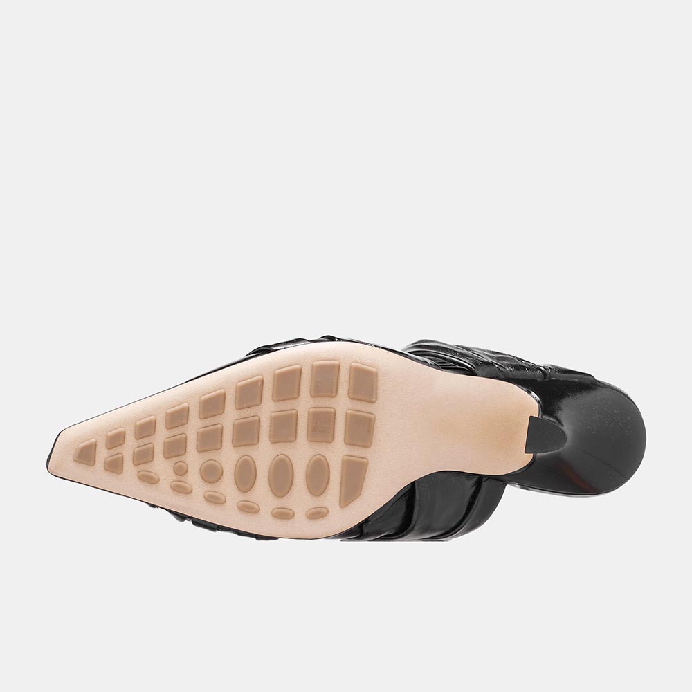 Introducing our stylish and sophisticated high heel mules in black. With a pointed toe and soft pleated design, these shoes are perfect for adding a touch of elegance to any outfit.