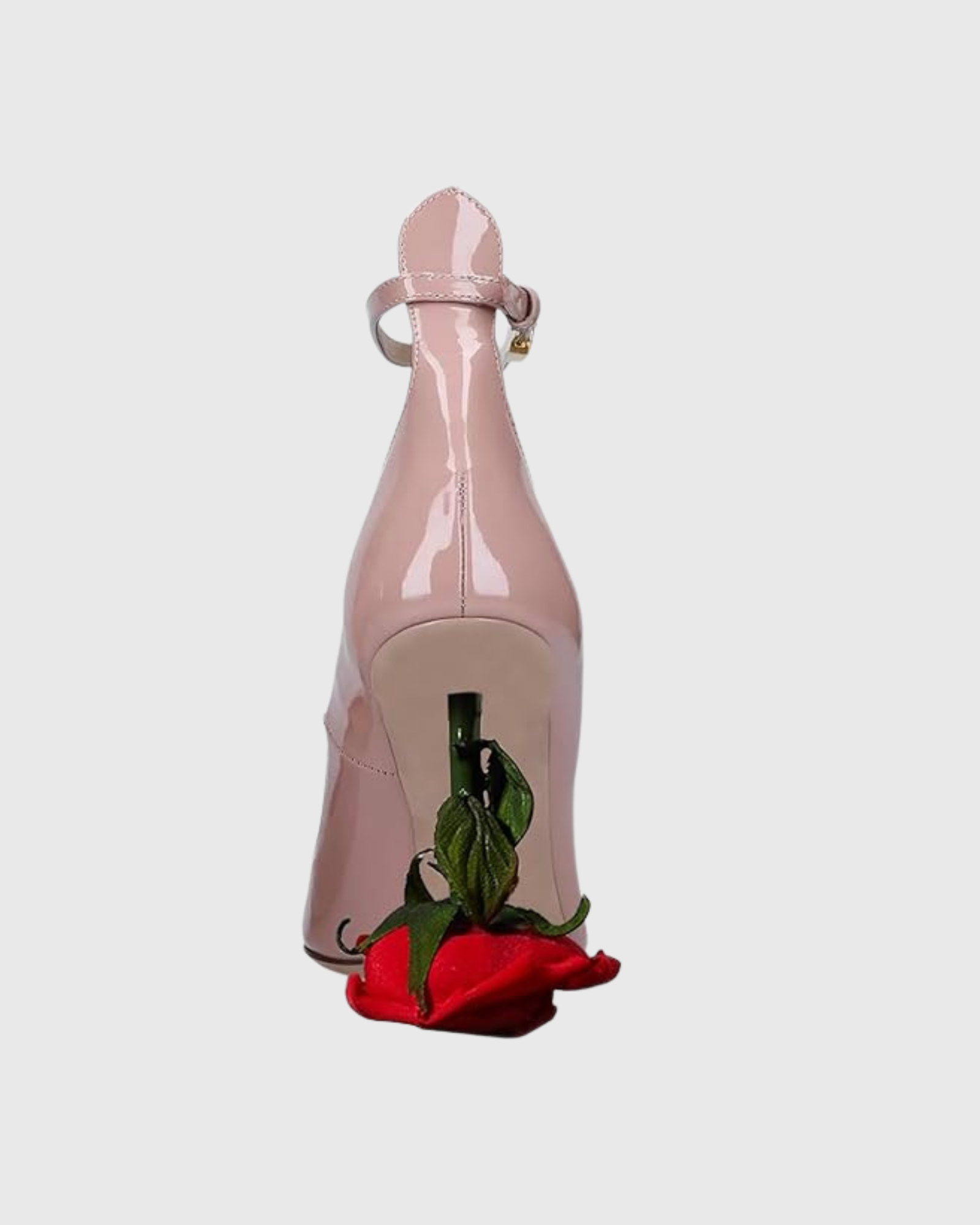 Experience elegance and style with our Venice Flower Heel Patent Leather Strap Pumps In Pink. These beautiful pumps feature a unique floral heel and patent leather straps, adding a touch of femininity to any outfit. Elevate your look and make a statement with these stunning pumps.