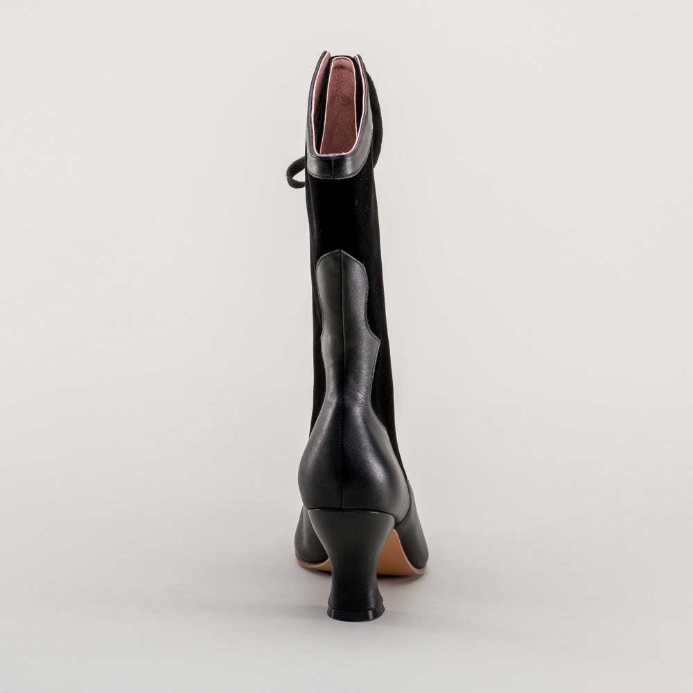 Vintage Black Closed-Toe Spool Heel Lace-Up Mid Calf Boots for Women