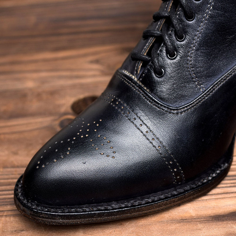 Vintage Lace-Up Almond Toe Spool Heel Mid Calf Boots in Black