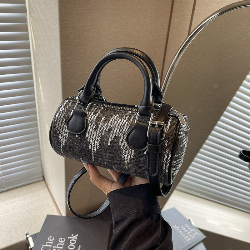 Sac à bandoulière cylindrique à paillettes vintage avec fermeture éclair