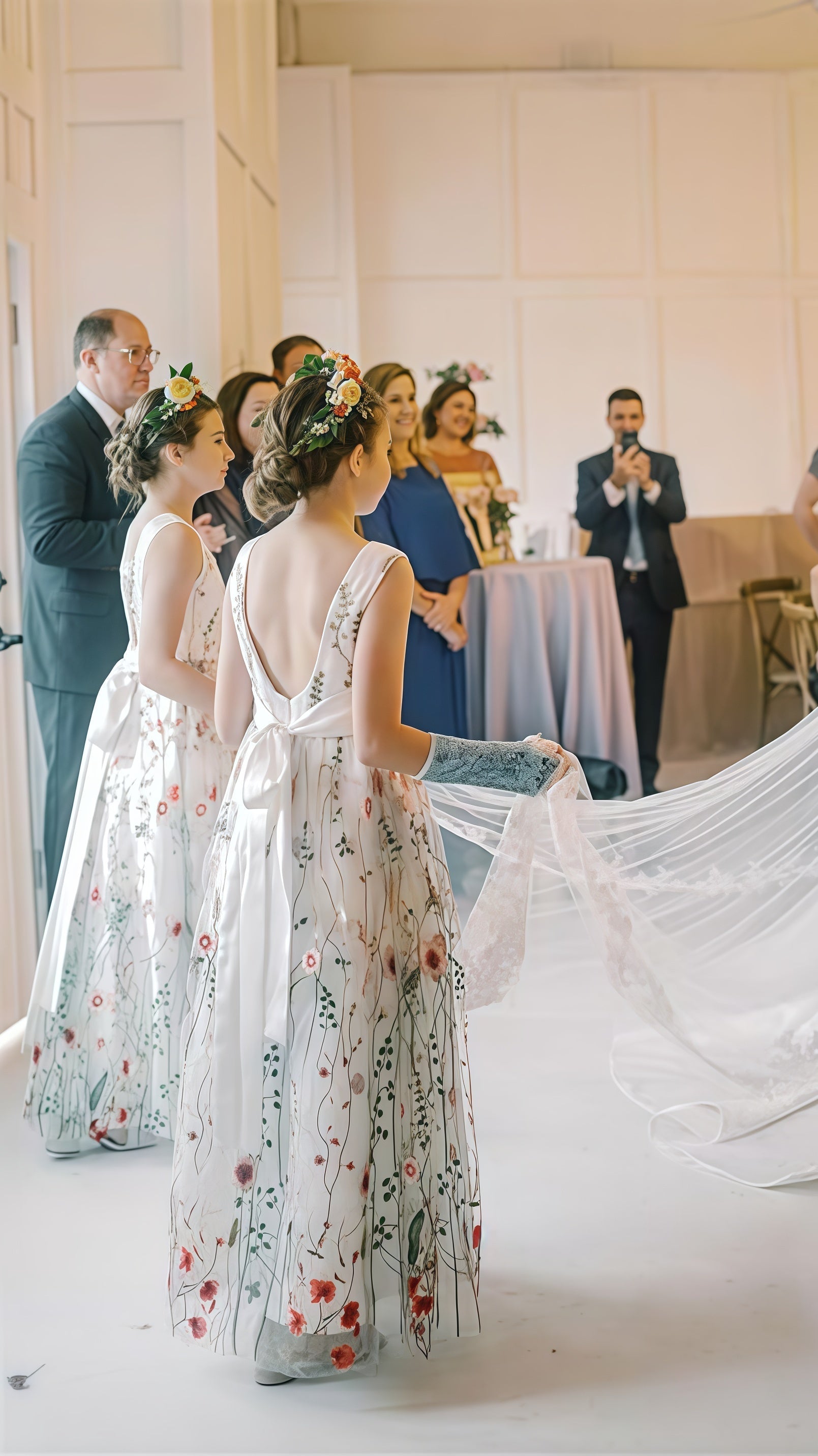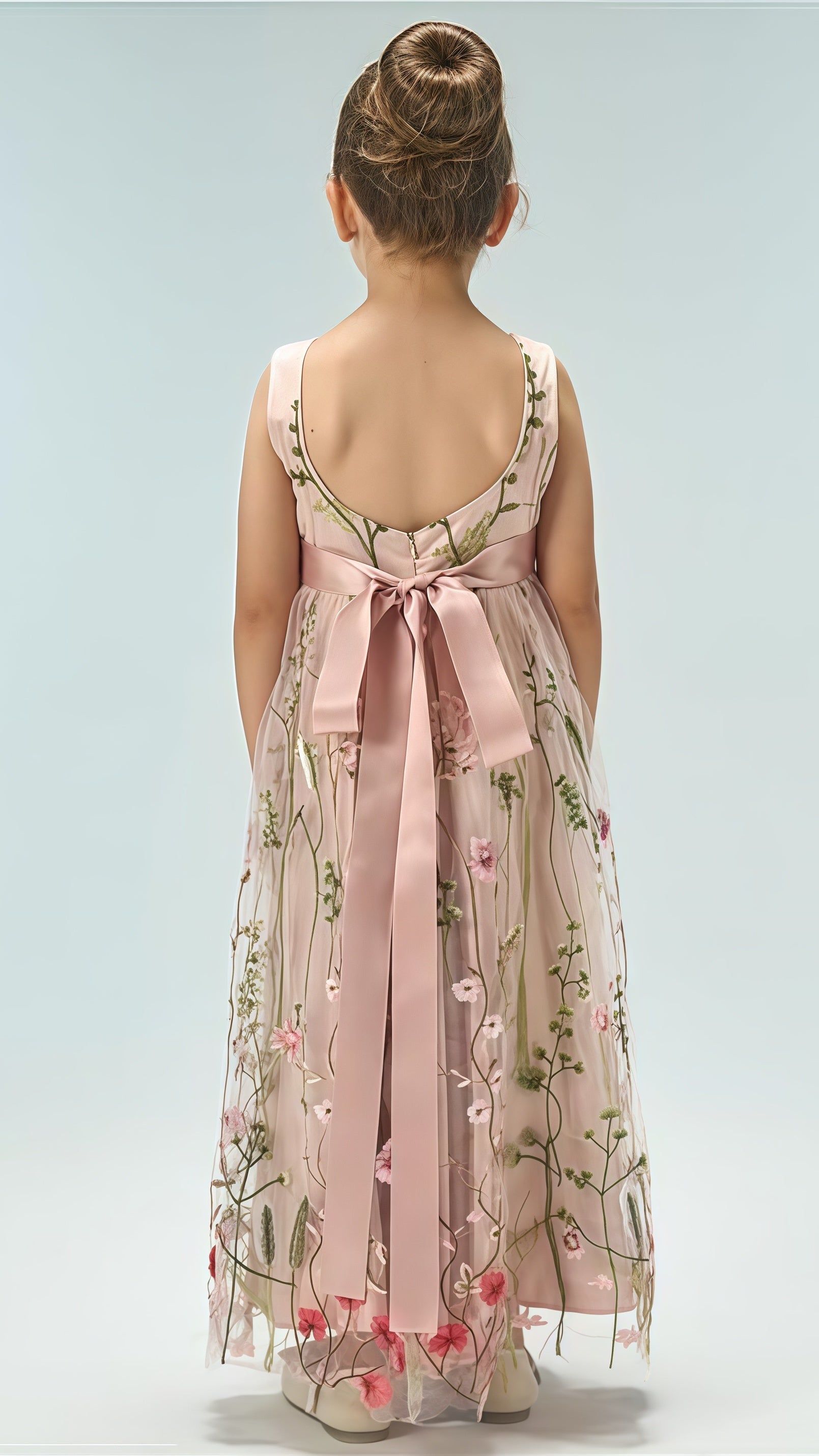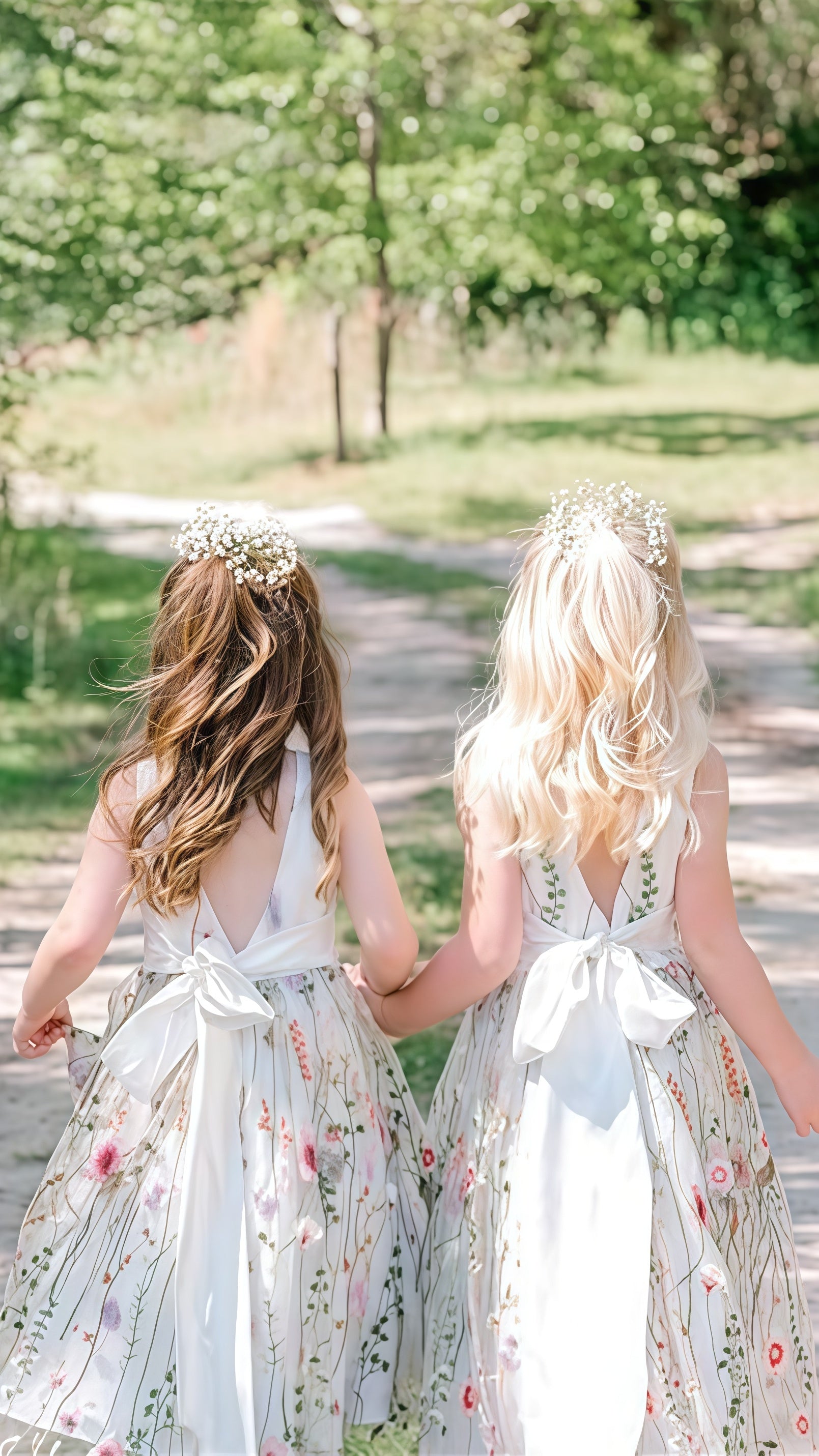 White V-neck Floral Flower Girls Dresses,AST1649