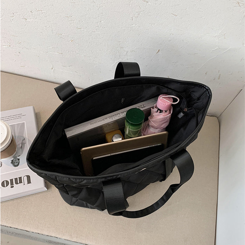 Sac fourre-tout en nylon de grande capacité avec coutures en losange pour femme, couleur unie