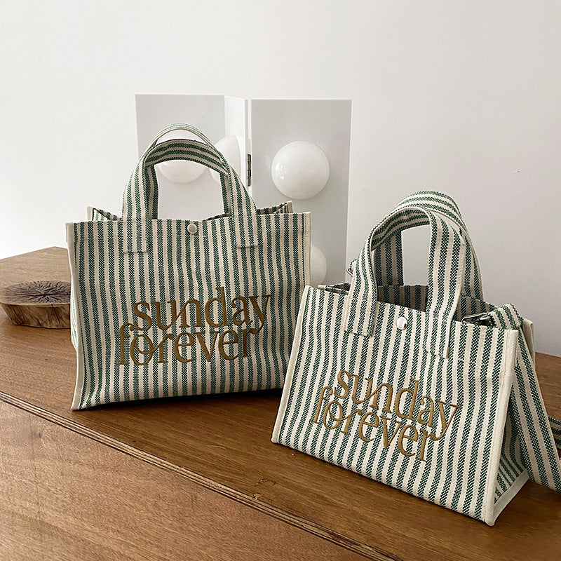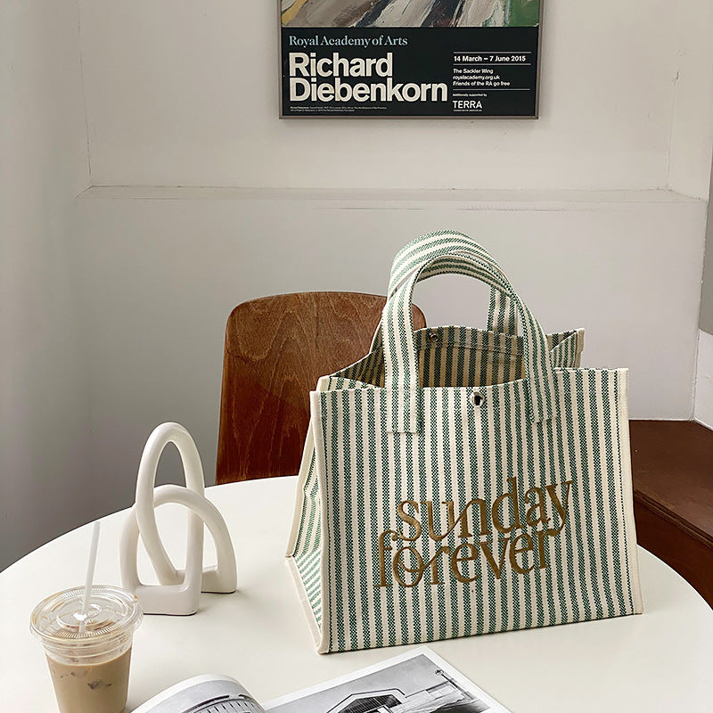 Sac fourre-tout décontracté en toile à rayures pour femme, grande capacité