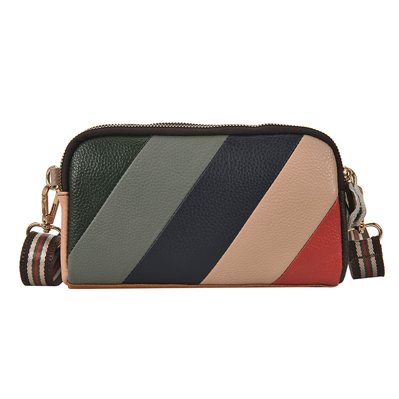 Sac à bandoulière décontracté en PU à rayures et fermeture éclair pour femme