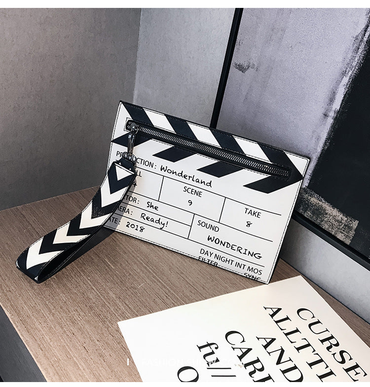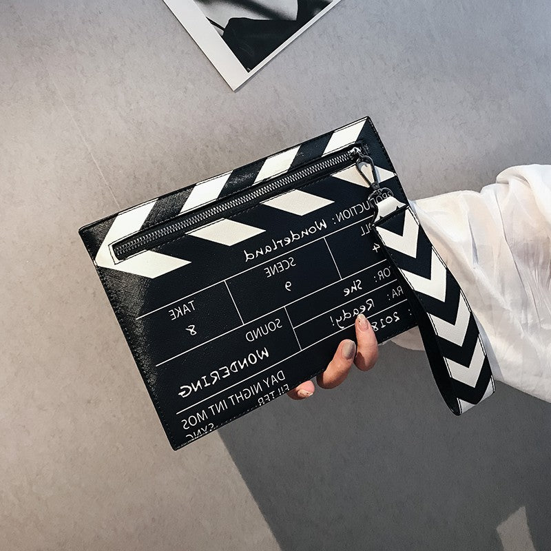 Pochette carrée en PU pour femme, design créatif en forme d'ardoise avec fermeture éclair