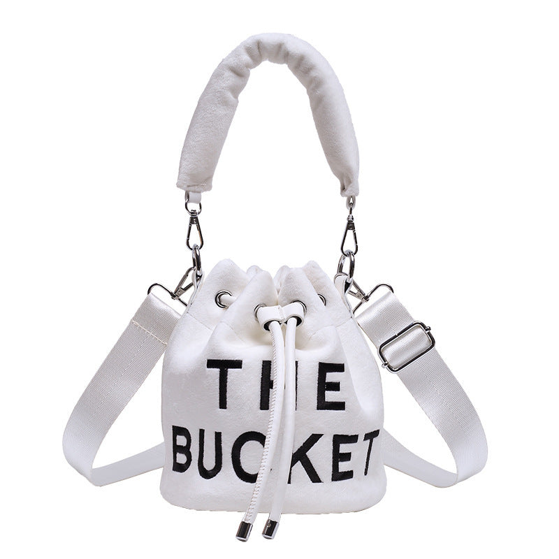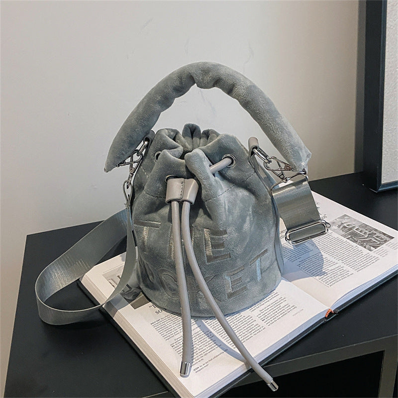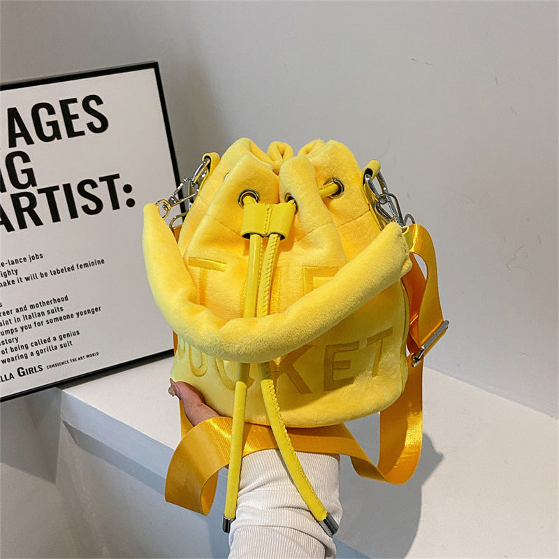 Sac à main seau brodé en peluche avec cordon de serrage pour femme, mode automne-hiver