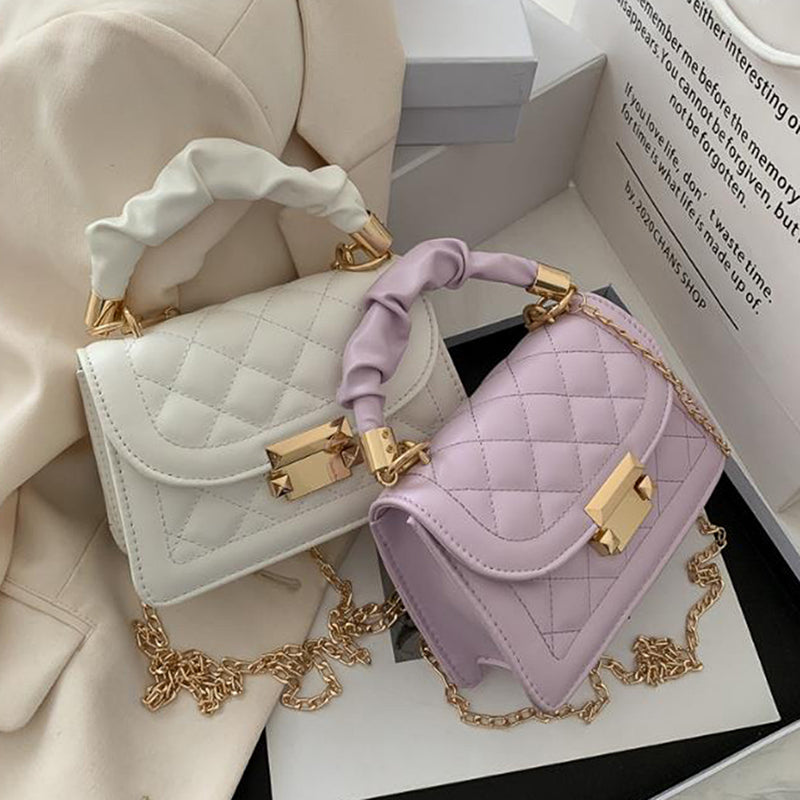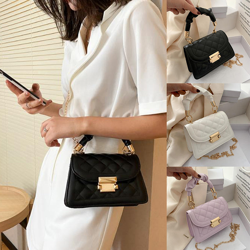 Sac à bandoulière en PU pour femme, motif à rabat et boucle, couleur unie, coutures en losange