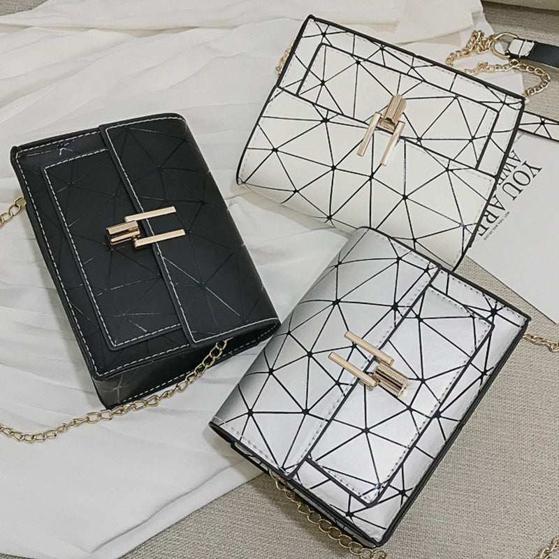 Sac à bandoulière en PU à motif géométrique et boucle à rabat pour femme