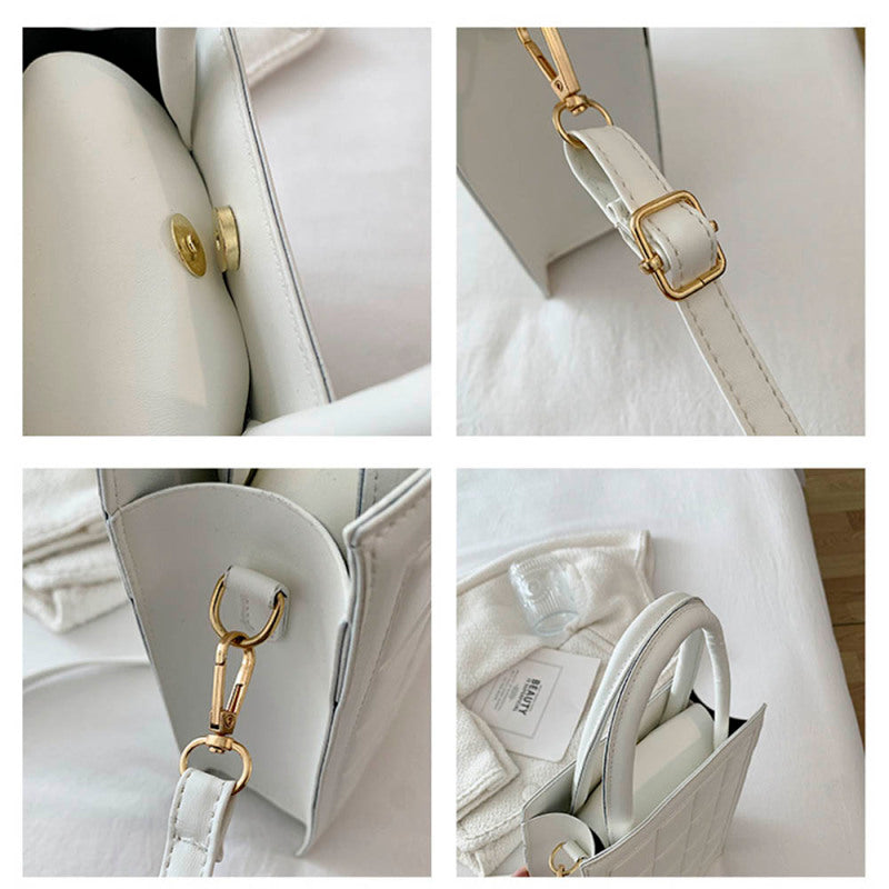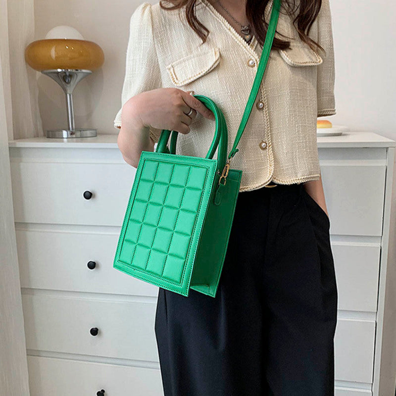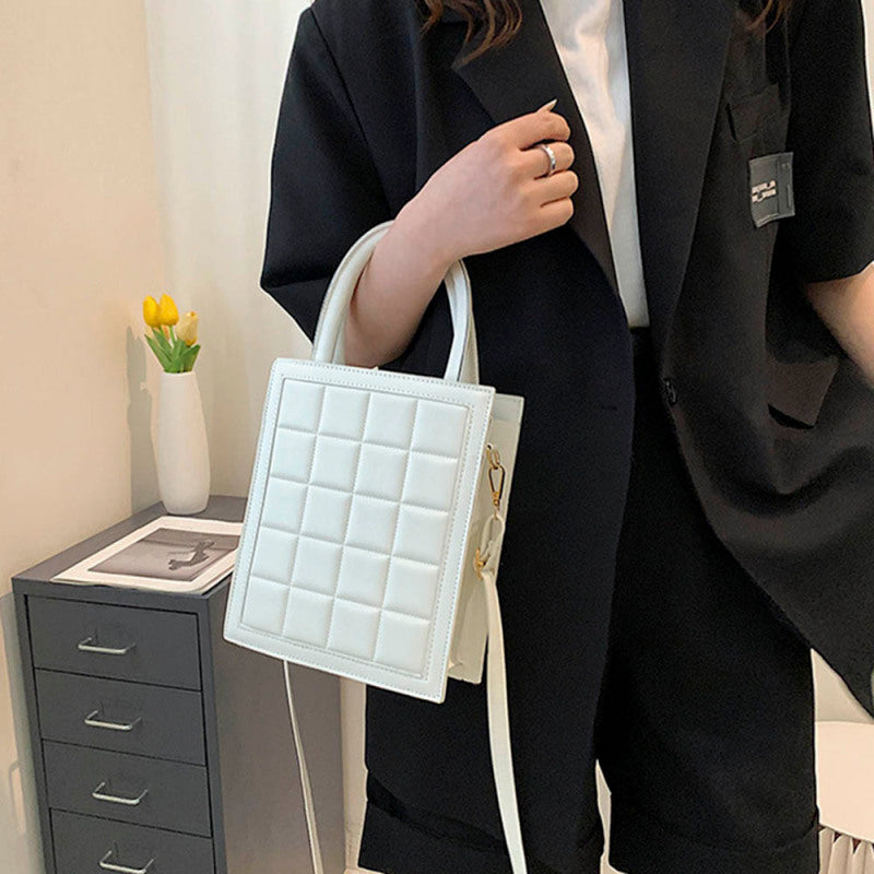 Sac à bandoulière en PU de grande capacité pour femme, motif écossais gaufré, couleur unie