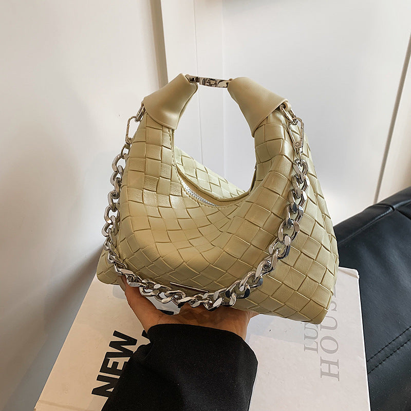 Sac à bandoulière simple et tendance pour femme, couleur unie, tissé avec chaîne