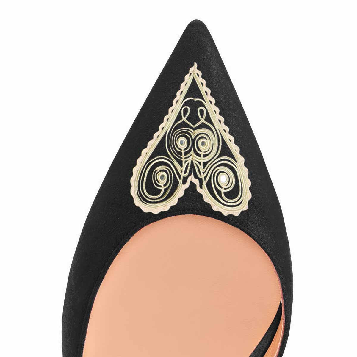 Women's Pointed Toe Heart Pattern Stiletto Heel Black Pumps