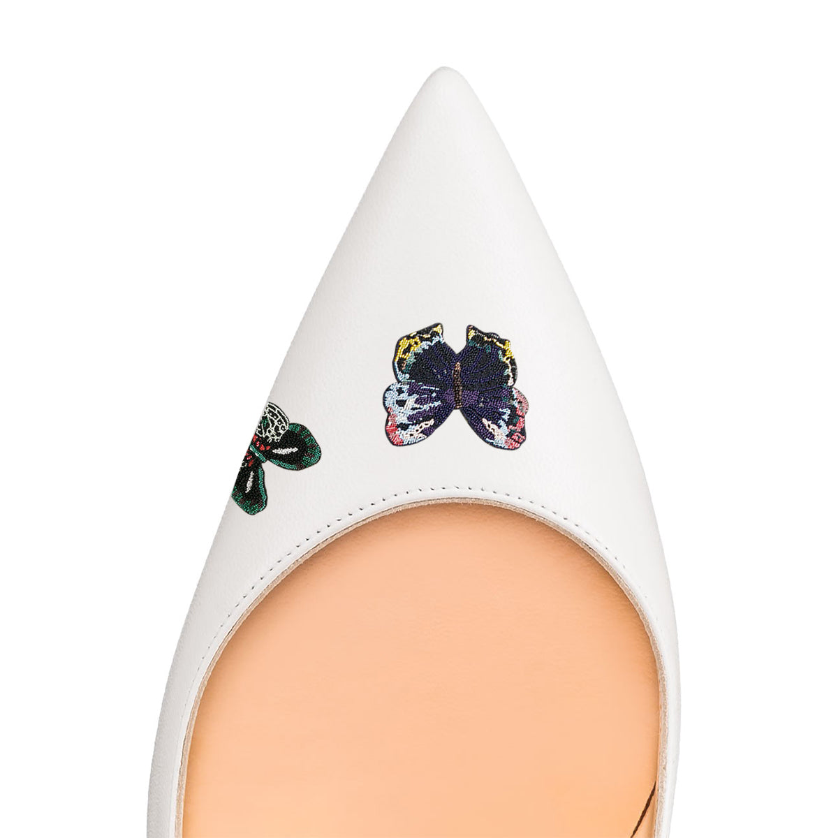 Elevate your style with these exquisite White Butterfly Pumps. Featuring a pointed toe and stiletto heel, they blend sophistication with charm effortlessly. Ideal for special occasions or adding a touch of elegance to your everyday ensemble.