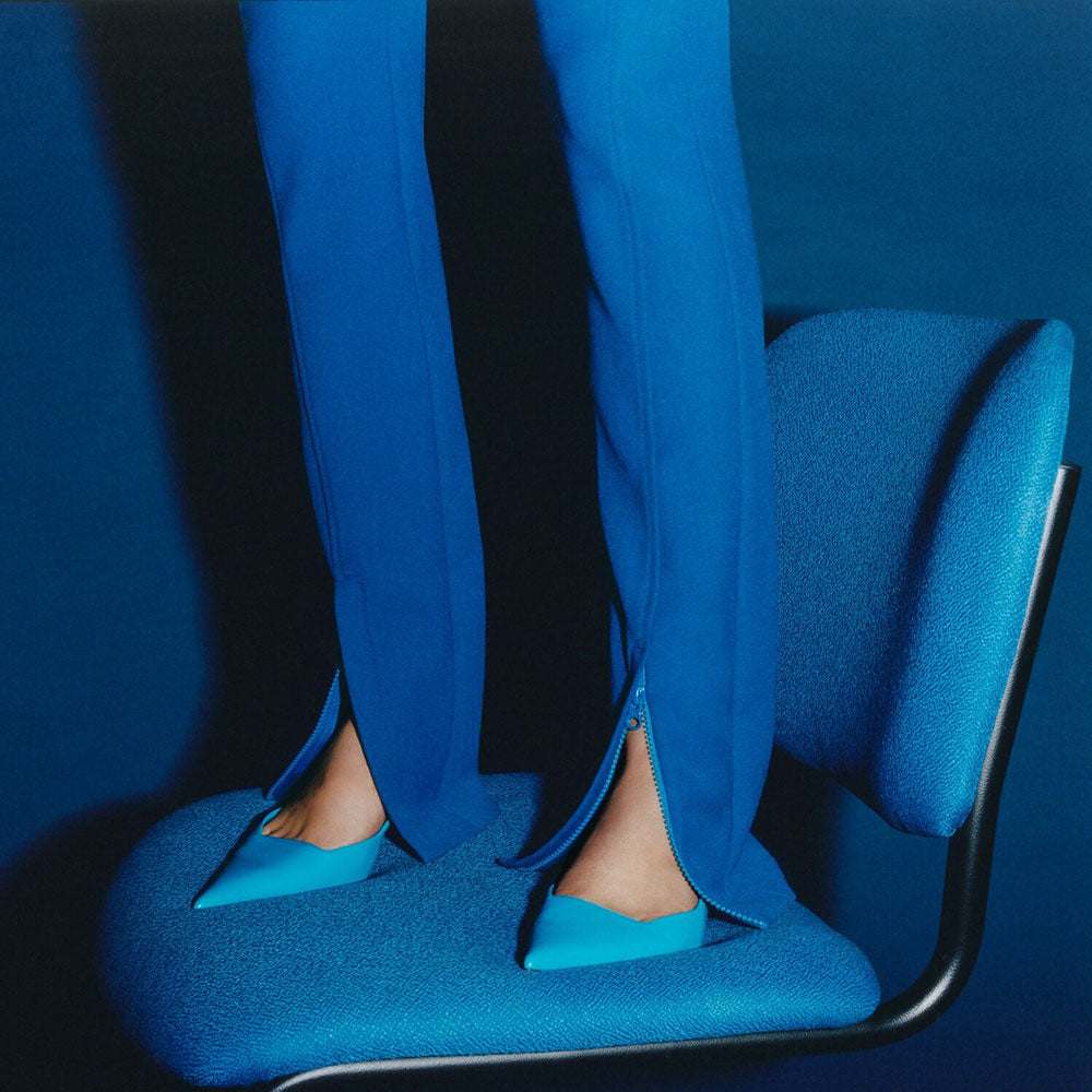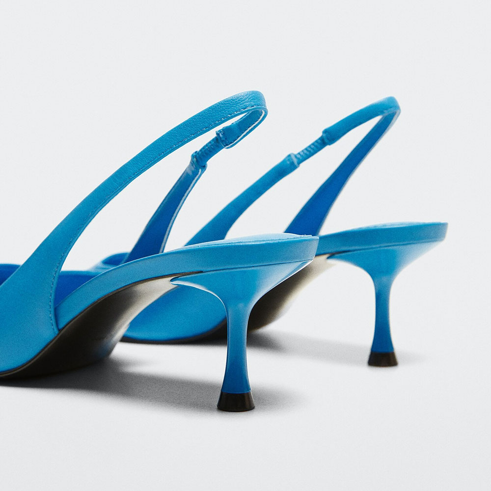 Women's Vegan Leather Pointed Toe Kitten Heel Blue Slingback Pumps