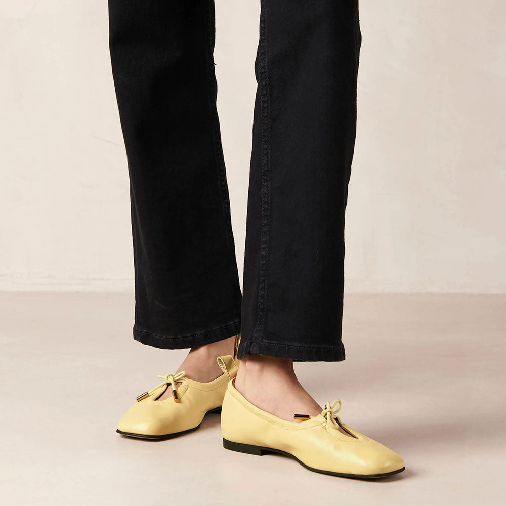- Special Designs: Yellow ballet flats feature a lace-up and softy material crafted design.