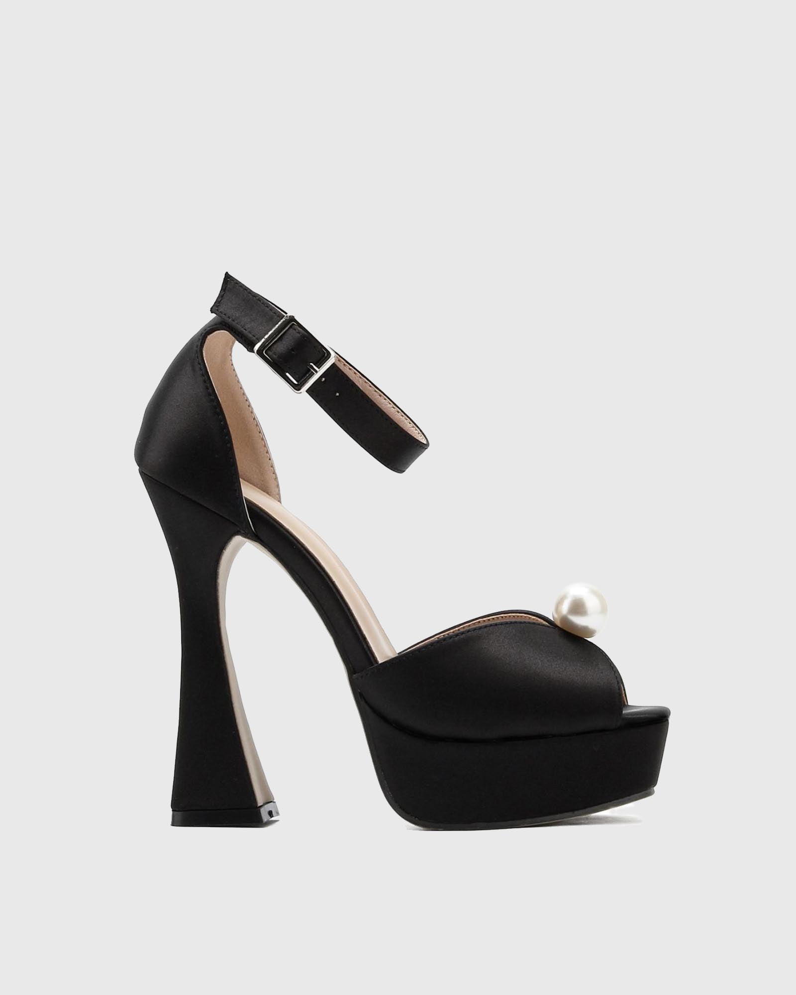 Liviana Pearl Satin Strap Platform Sandals In Black