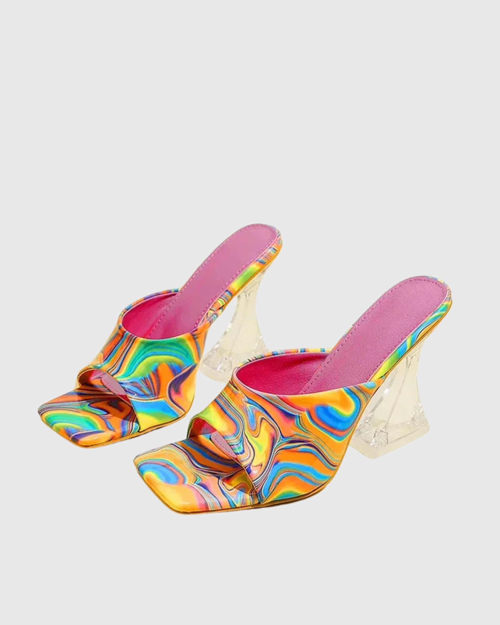 Elevate your style with the Alia Paint Flared Heels in Multicolor! These statement-making heels feature a unique paint design and a flared heel for added drama. With these heels, you'll stand out from the crowd and add a pop of color to any outfit. Perfect for making a bold impression and turning heads.
