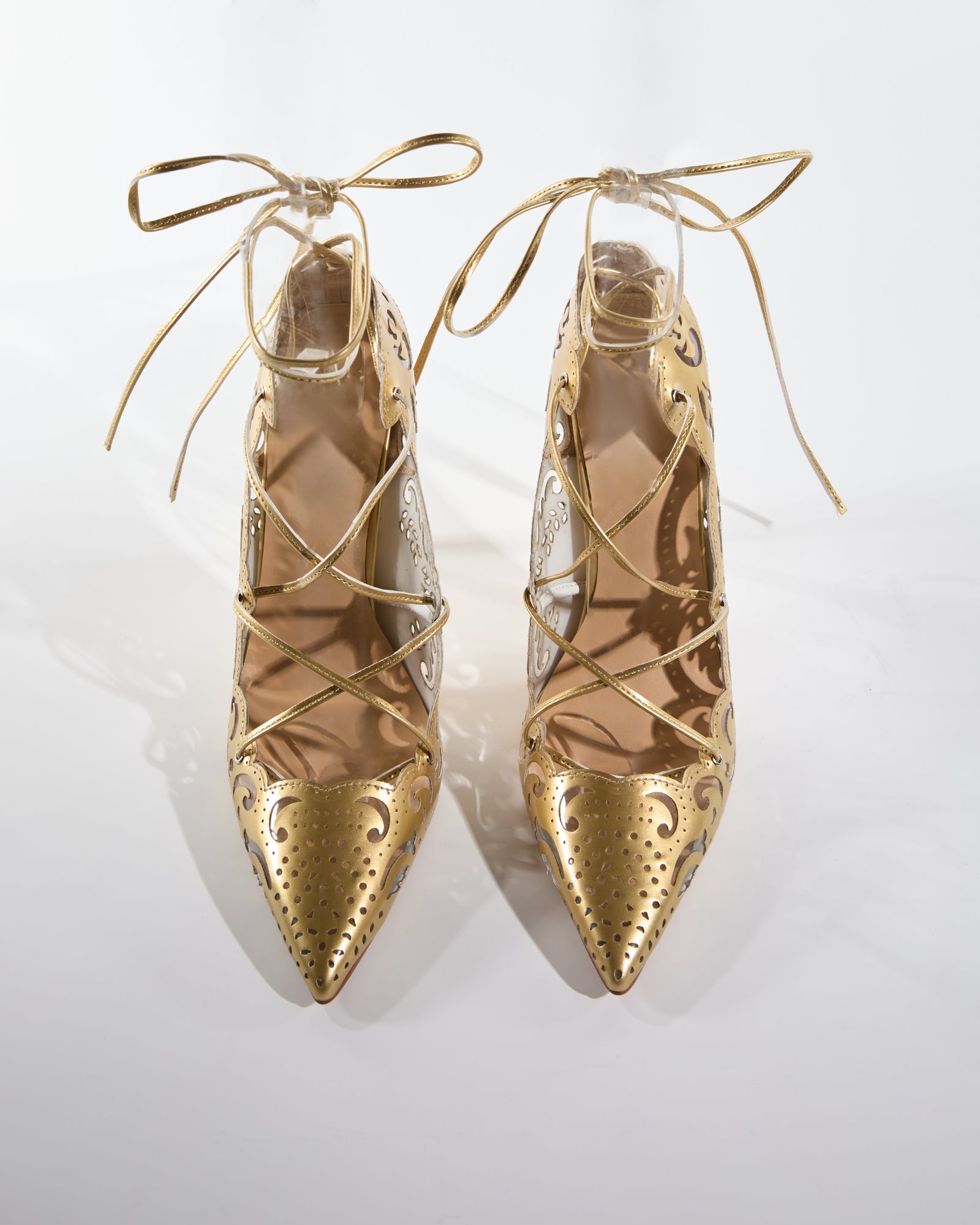 Ariya Cutout Pattern Lace Up Pumps In Gold