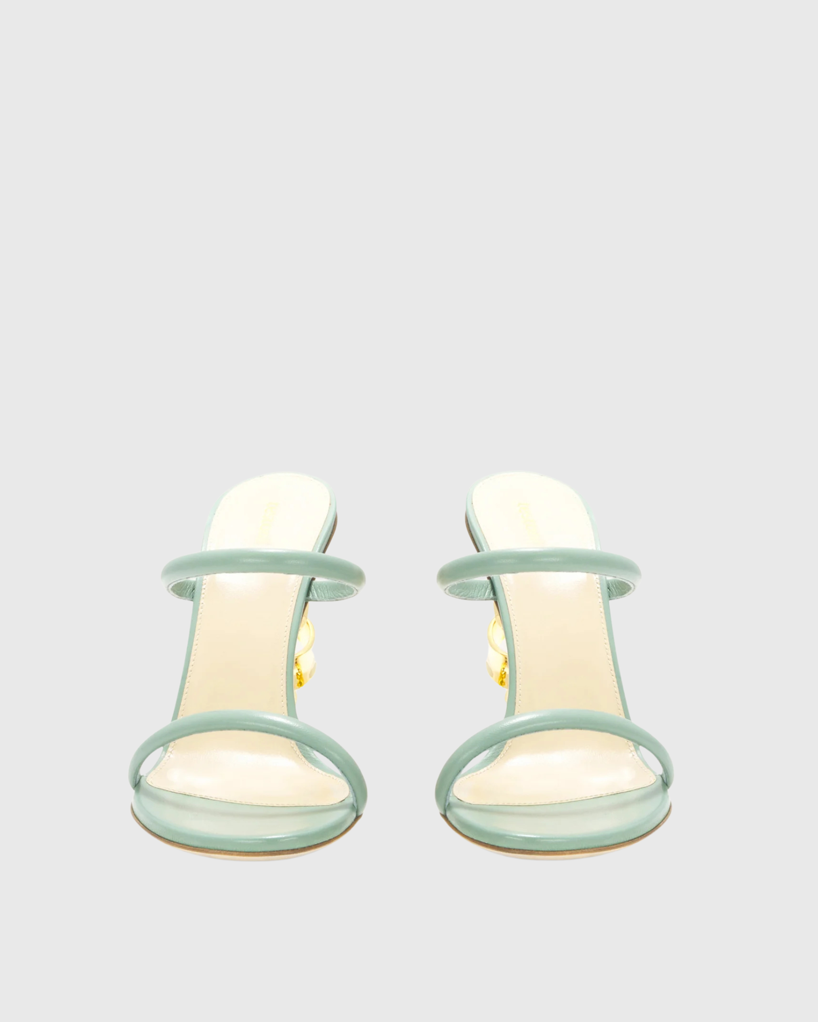 Step into effortless style with the Balor Metal Spiral Sandals in Mint. Featuring a unique spiral design and a fresh mint hue, these sandals add a modern twist to any outfit. Lightweight and comfortable, they are perfect for warm days when you want to stay cool and chic. Elevate your footwear collection with a pair that blends fashion-forward details and everyday wearability.