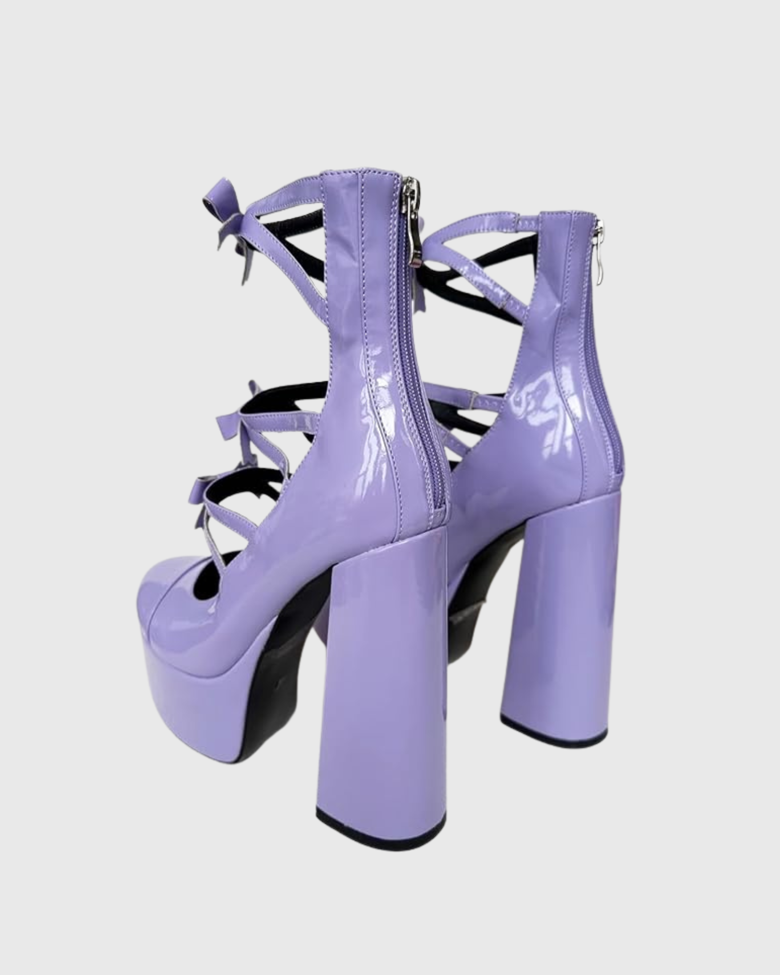 Step out in style with the Barbara Bow Cutout Platform Pumps in Purple. Featuring a bold platform and elegant cutout design, these pumps add height and flair to any outfit. The vibrant purple hue makes a confident statement, while the bow detail brings a touch of femininity. Perfect for both special occasions and chic everyday wear, these pumps combine comfort with eye-catching appeal to elevate your look effortlessly.