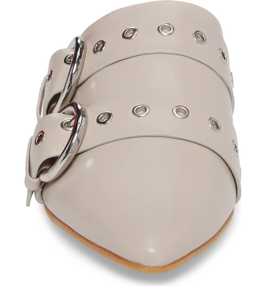 Light Grey Pointed Toe Flats Women's Buckled Mules