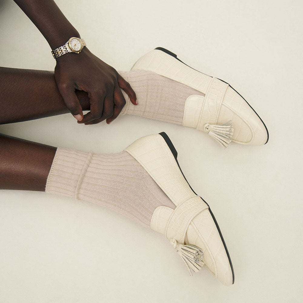- Special Designs: The beige women's loafers feature crocodile embossed with tassel decoration design.