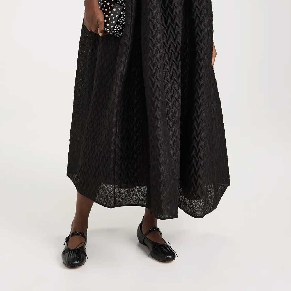 Black Bow Pleated Round Toe Ballet Flats with Beaded Buckle Strap